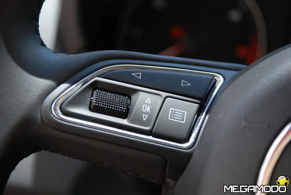 Un altro elemento di equipaggiamento al top è il sistema di informazione per il conducente, disponibile come optional nella linea di allestimento Attraction, o di serie nella linea Ambition. Ha la funzione di presentare tutte le informazioni importanti relative alle sorgenti audio, al telefono, al veicolo stesso e al sistema di navigazione opzionale su uno schermo monocromatico posizionato tra gli strumenti circolari. La moderna soluzione di comando del sistema, con visualizzazione a schede e il tasto di scelta rapida liberamente programmabile, rende l’uso semplice e intuitivo. Il comando può aver luogo anche tramite i tasti e le rotelline del volante multifunzione opzionale, come nei modelli Audi di categoria superiore. Il sistema è sempre incluso nel pacchetto MMI Navigation plus. Nel sistema di informazione per il conducente è integrato un computer di bordo con programma di efficienza che assiste il guidatore fornendogli consigli per un cambio marcia ottimale. Una visualizzazione ingrandita delle indicazioni di marcia segnala il momento in cui sarebbe opportuno innestare un altro rapporto. Un’altra funzione indica quali utilizzatori elettrici sono attivi sulla vettura (ad es. climatizzatore o lunotto termico) e quanto carburante consumano.