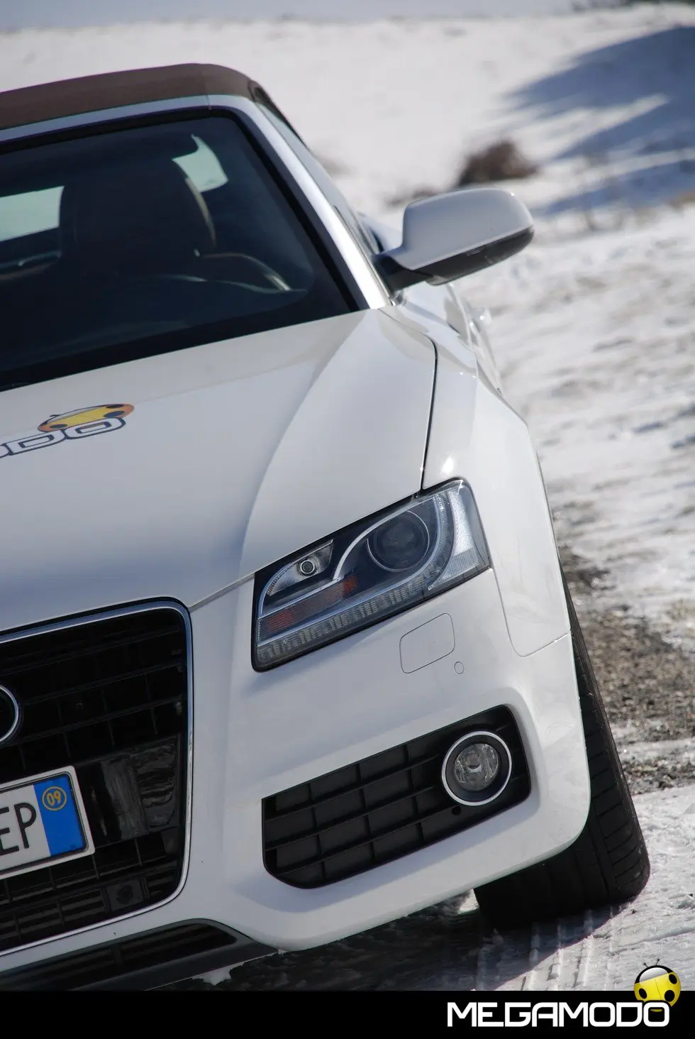 L'equipaggiamento La Audi A5 Cabriolet definisce nuovi parametri grazie al suo generoso equipaggiamento di serie. Ne fanno parte la capote completamente automatica, il frangivento, i cerchi in lega da 17 pollici, le due metà dello schienale dei sedili posteriori, ribaltabili singolarmente, con il grande vano passante, un climatizzatore automatico confortevole e l’impianto audio Concert con lettore CD e Mp3. Fanno parte dell’equipaggiamento di serie anche i porgicintura automatici, il freno di stazionamento elettromeccanico e i fari xeno plus con fascia di luci diurne e gruppi ottici posteriori a LED. Il sistema “adaptive light” combina i fari xeno plus con le luci direzionali di curva dinamiche, il controllo automatico degli abbaglianti commuta automaticamente le luci da anabbaglianti ad abbaglianti e viceversa. La chiave comfort consente l’accesso senza chiave, l’avviamento mediante pulsante e l’apertura e chiusura della capote via onde radio. Il sistema di assistenza alla partenza “Audi hold assist” arricchisce con ulteriori funzioni il freno di stazionamento elettromeccanico.
