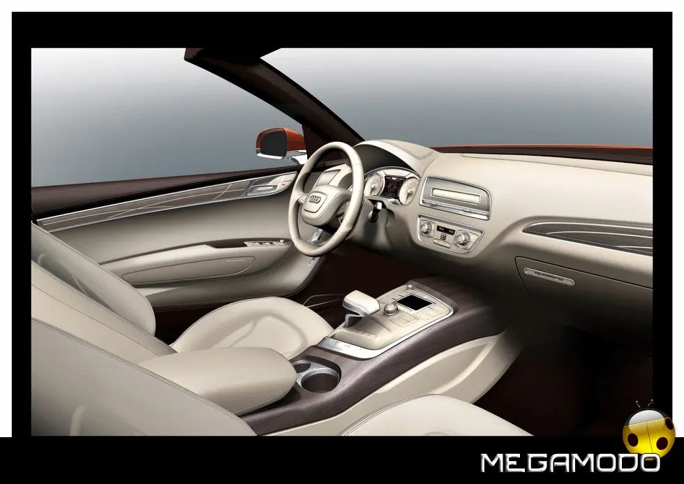 Come è tipico di ogni Audi, anche nello studio Cross Cabriolet quattro la zona del cruscotto è nettamente orientata verso il guidatore. Sul lato passeggero, invece, la plancia risulta molto ariosa e lineare. Plancia e portiere sono collegate tra loro da linee slanciate in cui confluisce senza soluzione di continuità il cruscotto stesso.