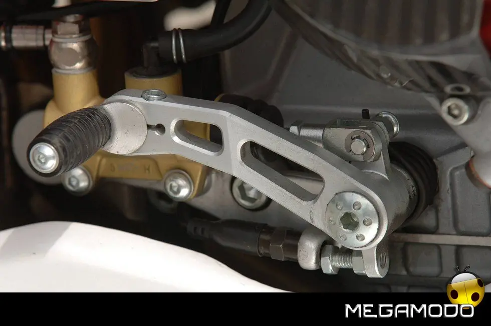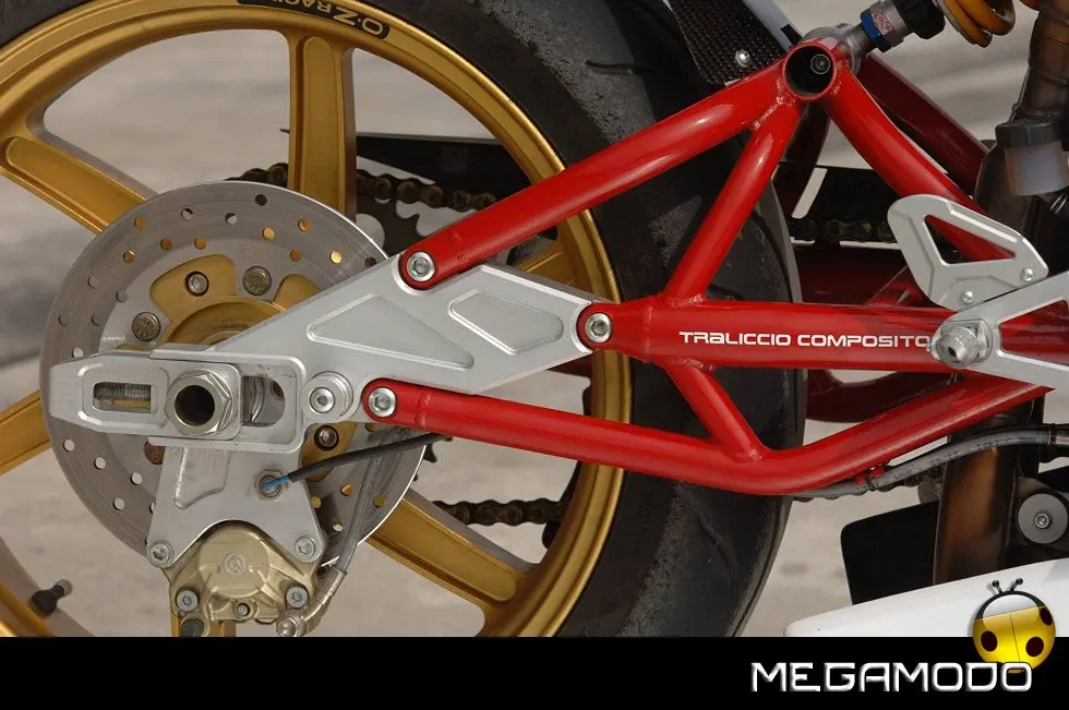 Sospensioni anteriori e posteriori Öhlins completamente regolabili, una frizione antisaltellamento racing, un impianto frenante Brembo con pompe e pinze radiali, uniti a ruote in alluminio forgiato OZ racing, completano questo capolavoro di sportività italiana.