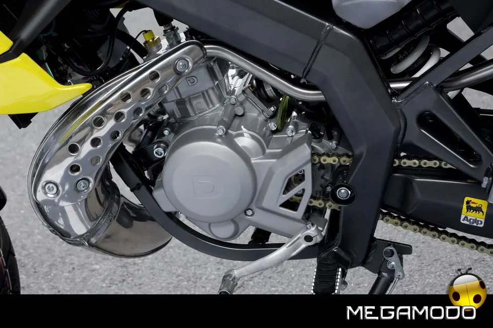 Motore Monocilindrico 2T Diametro x corsa 39,86 x 40 mm Cilindrata 49,9 cc Alimentazione Carburatore Ø 17,5 Raffreddamento A liquido Accensione A pedale Rapporto di compressione 11,5:1 Carburante Benzina senza piombo Lubrificazione Pompa dell'olio meccanica Frizione Multidisco Cambio 6 rapporti Telaio Doppio trave in acciaio Basculante Doppio braccio in acciaio Sospensione anteriore Forcella idraulica invertita da Ø 41 mm. Corsa 150 mm Sospensione posteriore Monoammortizzatore. Corsa ruota 150 mm Freno anteriore Disco: 300 mm WAVE Freno posteriore Disco: 220 mm WAVE Pneumatici Anteriore: 100/80x17” Posteriore:130/70x17” Lunghezza massima 2.020 mm Altezza sella 835 mm Larghezza massima 805 mm Distanza tra gli assi 1.370 mm Serbatoio combustibile 7 litri Peso a vuoto 96 kg