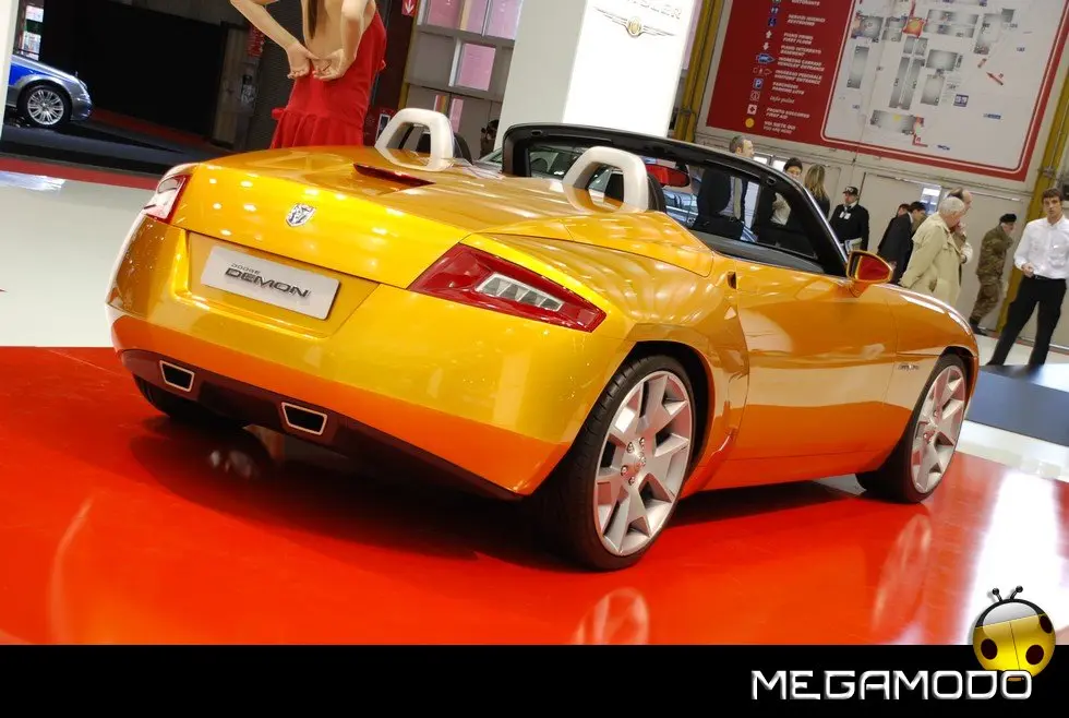 Dodge presenta in anteprima italiana al 32° Motor Show di Bologna Dodge Demon concept. Dodge Demon è un roadster agile e compatto che coniuga linee essenziali e proporzioni da pura sportiva con le brillanti prestazioni ed il design audace del marchio Dodge. “Se Dodge Viper rappresenta l’icona della sportività accessibile a pochi, Dodge Demon è il roadster da sogno per tutti gli appassionati,” ha spiegato Jae Chung – Principal Exterior Designer di Dodge Demon. “Le linee semplici e al tempo stesso audaci del concept Demon sono caratterizzate da un’inedita combinazione di curve sinuose e superfici piane dal forte impatto visivo”.
