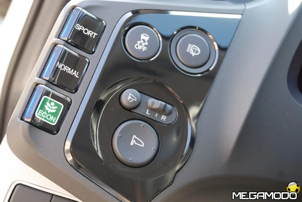 Modalità ECON Honda è consapevole del fatto che in condizioni di traffico intenso anche le auto più sportive e divertenti possono e devono essere guidate stando attenti ai consumi. In questi casi è possibile selezionare la modalità ECON, dove la priorità, nel funzionamento del sistema di controllo elettronico dell'acceleratore (drive by wire), della centralina motore ECU, del climatizzatore e del sistema ibrido, è il contenimento dei consumi di carburante. Nei casi in cui una guida sportiva non è possibile né consigliabile, la funzione Eco Assist, abbinata alla modalità ECON, rappresenta un modo divertente per cercare battere il proprio record di consumo minimo, ad esempio mentre ci si reca al lavoro o in condizioni di traffico intenso. La modalità ECON riduce la sensibilità dell'acceleratore uniformandone la risposta, assistita in questo dall'impiego di una diversa mappatura del motore che dà la priorità alla riduzione dei consumi. La modalità ECON agisce anche sul climatizzatore, mettendo l'aria in modalità ricircolo e limitando il funzionamento del compressore per ridurre il consumo energetico. Anche l'intervento di assistenza del motore elettrico viene ridefinito con la priorità di limitare i consumi, ma senza compromettere l'efficacia dell'assistenza.
