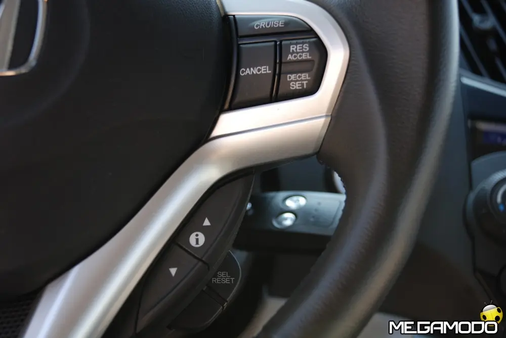 Strumentazione Nella parte centrale del cruscotto è posizionato il contagiri, al cui centro si trova a sua volta il tachimetro. All'avviamento, il contagiri esegue una rotazione a fondo scala quindi ritorna a zero, attirando così l'attenzione del guidatore sugli strumenti. Ai due lati del gruppo contagiri/tachimetro si trovano gli altri strumenti e i display contenenti le indicazioni secondarie. A destra vi sono l'indicatore di livello del carburante e l’indicatore del consumo istantaneo e al di sotto di questi il Multi-Information Display (MID). A sinistra dello strumento centrale compaiono l'indicatore dello stato di carica della batteria e l’indicatore della batteria IMA e l’indicatore ricarica/assistenza. Il display multifunzionale (MID) è in grado di visualizzare il tempo trascorso dall’ultima accensione chiave, il consumo medio di carburante e la velocità media. Il MID può inoltre visualizzare, oltre al flusso di energia sia del motore elettrico sia del motore a scoppio, la barra Eco Assist, che fornisce indicazioni dettagliate sullo stile di guida da adottare, evitando accelerazioni e frenate troppo brusche quando si vuole risparmiare carburante. Il conducente può inoltre controllare i risultati ottenuti nei viaggi precedenti e i propri progressi nel raggiungimento di una guida ecologica. La zona degli strumenti è racchiusa lateralmente tra due aree contenenti i comandi utilizzati più di frequente, che in questo modo risultano a portata di mano. L'ala sinistra comprende i comandi del sistema di guida a 3 modalità, raggruppati a fianco dei comandi degli specchietti esterni. L'ala destra include i comandi e il display del climatizzatore, posizionati vicini per una maggiore comodità d'uso. Il volante di guida riflette nello stile quelli degli altri modelli Honda, con i comandi audio sulla razza sinistra e il cruise control (se in dotazione) su quella destra. I comandi del display multifunzionale (MID) si trovano sotto la razza destra, mentre i pulsanti del sistema vivavoce e del sistema i-pilot a comando vocale (se in dotazione) sono sotto la razza sinistra. Flessibilità degli interni Il raffinato abitacolo ha una configurazione 2+2 consentendo l’utlizzo di ulterior due sedili che sono equipaggiati con ganci ISOFIX per i seggiolini. I sedili posteriori si ribaltano facilmente e velocemente per aumentare notevolmente il volume di carico. I sedili posteriori possono essere abbattuti con un unico movimento, anche rimanendo dietro la vettura, ampliando in pochi istanti il normale volume di carico (214 litri VDA). Abbattendo i sedili si crea uno spazio di carico piatto dalla sorprendente capacità di 382 litri (misurato con il metodo VDA, fino all'altezza dei finestrini), che consente di trasportare una notevole quantità di bagagli supplementari. Il bagagliaio è inoltre dotato di un ulteriore vano di carico sottostante della capacità di 19 litri, utile per trasportare altri oggetti o per nasconderli alla vista. Questo vano, situato tra l’unità IPU e il paraurti posteriore, è sufficientemente profondo da alloggiare una valigetta porta computer o oggetti simili. Il vano di carico può essere configurato utilizzando il telo copribagagli, che in alternativa può essere sganciato e fissato al pianale. In questo modo è possibile separare il bagaglio coperto ricavando una sezione nascosta vicino alla soglia del bagagliaio, praticamente invisibile dall'esterno. La terza possibilità è quella di fissare il telo distendendolo sul pianale del bagagliaio, in modo da avere a disposizione tutta l'altezza di carico quando si abbattono i sedili.