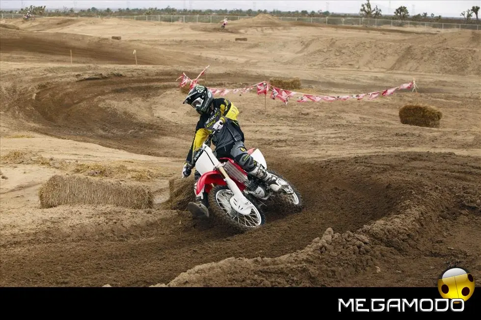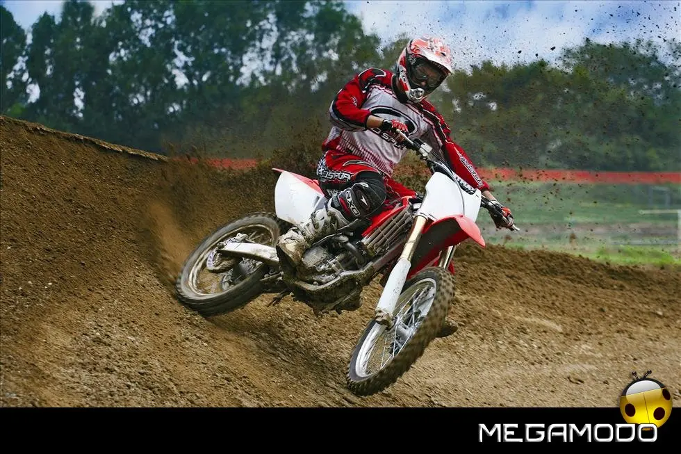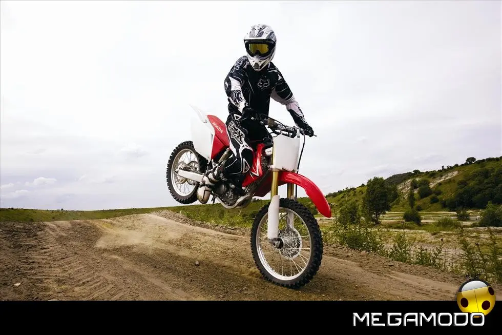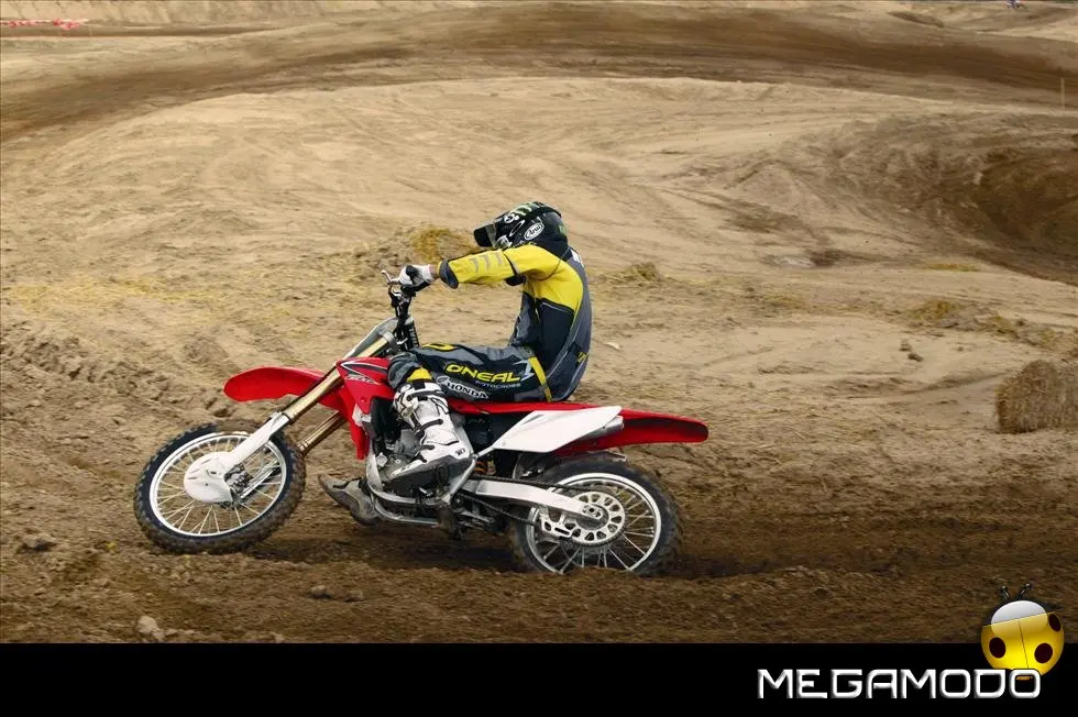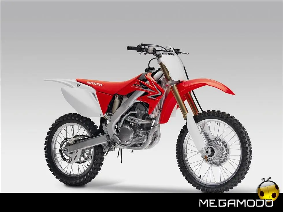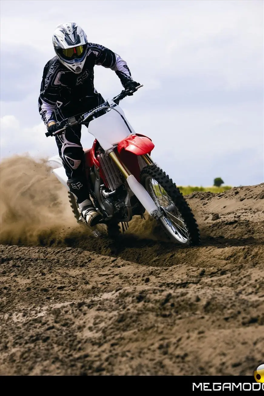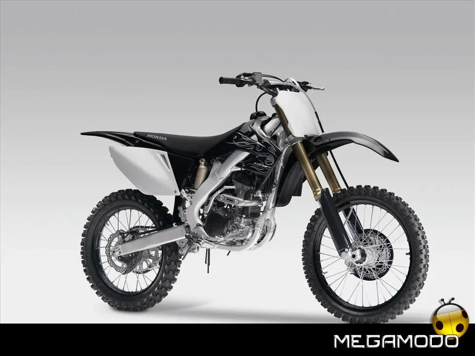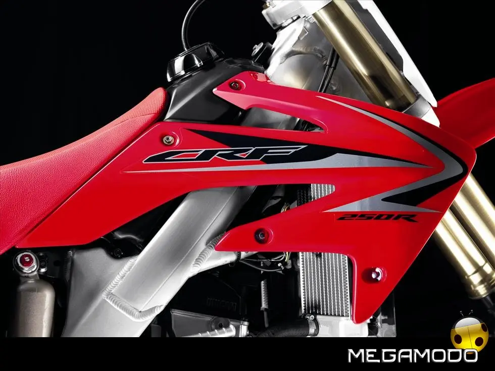 Una moto vincente, che segue le orme della CRF450R, la… “sorella maggiore”. La CRF250R é una delle grandi protagoniste del Supercross e del Mondiale Motocross. Beneficia direttamente della tecnologia e della componentistica della… sorellona, con un potente motore a 4 tempi rapido a salire di giri, e lo scarico con doppio terminale - unico nella categoria. Quest’anno la CRF250R è pronta a schierarsi al cancello forte di un peso ridotto (intorno ai 100Kg), un’erogazione addolcita, un nuovo e filante styling ed una maneggevolezza ancor migliorata. L’impressionante vigore del propulsore con distribuzione Unicam è stato addolcito aumentando la coppia ai medio-bassi regimi e agevolando i cambi di marcia – ora meno faticosi. Il telaio è stato modificato per renderlo più efficace nei tratti veloci e nei salti. La taratura delle sospensioni è stata rivista, così come i settaggi interni dell’ammortizzatore di sterzo, per garantire un superbo controllo del mezzo e sfruttare una miglior trazione anche nei tracciati sabbiosi più impegnativi e sulle superfici più impervie.