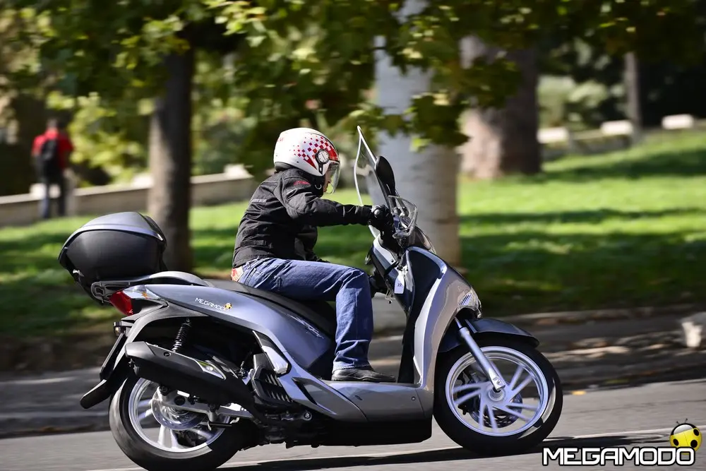 Lo scooter rimane sicuro, facile, piacevole da guidare, l’interasse è compatto 1340mm, la sella è 799mm quindi molto comoda, il serbatoio è da 7,5 l con un autonomia di oltre 300 km con un pieno; per quanto riguarda il peso siamo sui 135 kg con pieno di benzina (un kg in meno del precedente modello nonostante sia stato istallato il sistema ABS). Altre dotazioni interessanti sono il vano nel retro scudo, le pedane estraibili in alluminio per il passeggero, il blocchetto di avviamento ha un sistema di antifurto meccanico che con un piccolo sportellino blocca l'inserimento di altre chiavi; altra novità è quella del doppio cavalletto, per quanto riguarda il vano sottosella ci sono due ganci dove è possibile legare un eventuale secondo casco e vincolarlo così allo scooter.