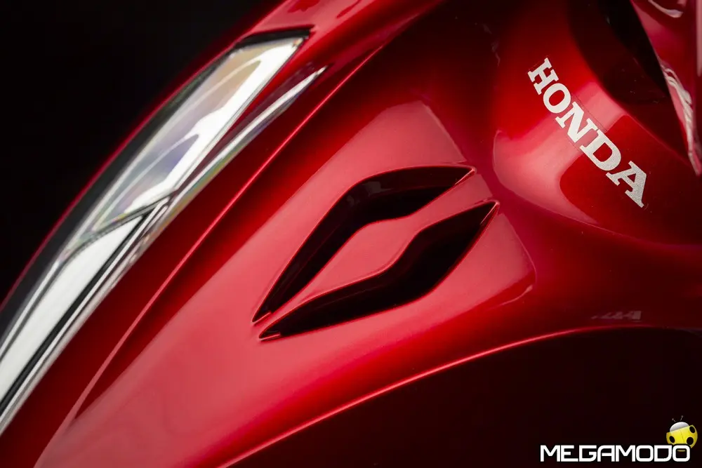 Come ogni modello Honda si compone di tre elementi: sicurezza, divertimento, rispetto per l’ambiente. Parliamo di uno scooter in armonia con la società poiché i consumi sono efficienti, hanno basse emissioni inquinanti e i motori sono silenziosi. Il protagonista è sicuramente il nuovo motore eSP, leggero e molto compatto. Il pistone è stato riprogettato utilizzando la metodologia CAE (computer aided engineering), il radiatore è più efficiente ed ora non è più montato davanti ma sul fianco del motore. Il numero di parti che compongono il motore eSP è il 20% inferiore rispetto al precedente modello. Una caratteristica importante è l’alternatore elettronico che funziona anche da avviamento. Sul nuovo SH c'è anche lo Start&Stop, che si attiva ogni qual volta ci si ferma per più di 3 secondi. L’obiettivo primario dei tecnici giapponesi era quello di evolvere nel migliore dei modi lo scooter che da 15 anni è in cima alle classifiche delle vendite in Italia. Honda, per questo modello ma anche per quelli precedenti, ha voluto che il design fosse sviluppato a Roma proprio per sottolineare l’aspetto europeo. Grazie all'esperienza e alla bravura di vari designer si è riusciti a sviluppare uno scooter dall'aspetto quasi scultoreo. Negli ultimi anni molti competitor si sono ispirati alla linea dell'SH che ha perso molto della sua unicità, quindi, intervenendo soprattutto nella parte frontale, si è creato qualche cosa di più sofisticato dal punto di vista stilistico e in più, modificando le luci di posizione, si è accresciuta la sua immagine elegante. Un grande lavoro è stato fatto sulla cura certosina dei dettagli eliminando lo stacco della carrozzeria anteriore da quella posteriore per dare un senso di continuità e di sobrietà allo scooter; altro accorgimento fondamentale è stato quello di modificare la zona del guidatore per dare al pilota la posizione più confortevole. Ci sono anche da evidenziare alcune chicche come ad esempio il logo in 3D incastonato nella carrozzeria, il silenziatore ha un paracalore a doppio strato, la luce posteriore è sdoppiata con un grosso gruppo ottico per lo stop, nuove le ruote con cerchi da 16 pollici in alluminio pressofuso a 10 razze, pneumatici tubeless, forcella telescopica idraulica da 33mm e ammortizzatori regolabili su cinque posizioni (la versione precedente invece era solo su tre).