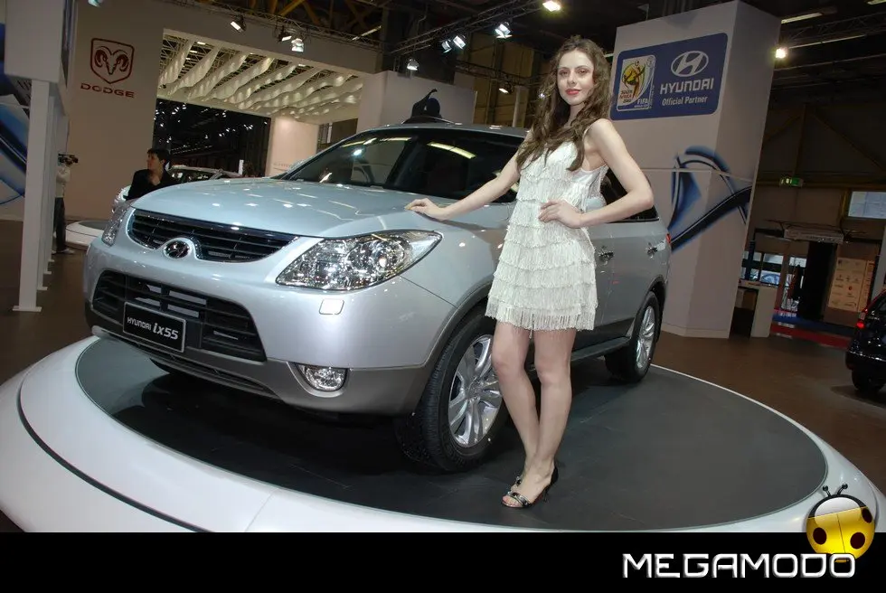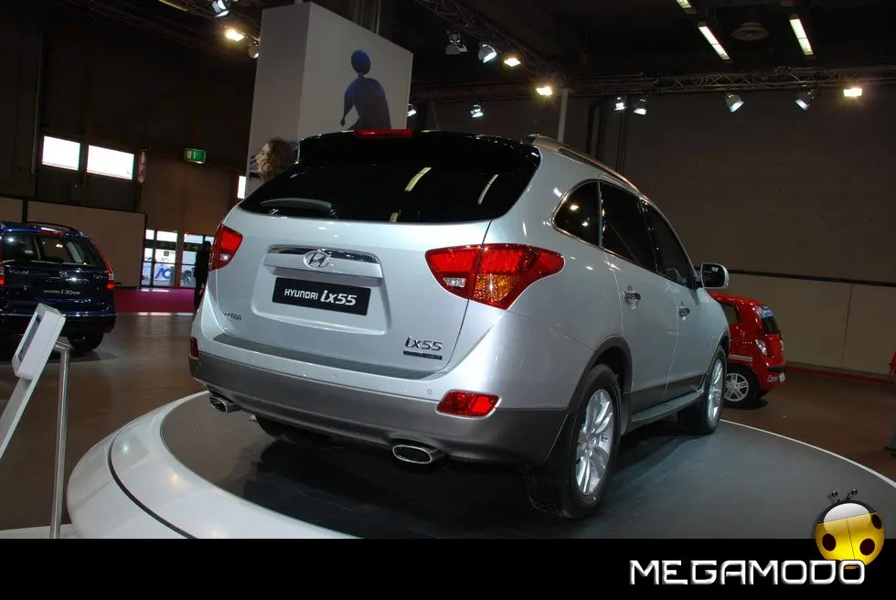 Il nuovo SUV Premium ix55, in configurazione sette posti fa il suo debutto italiano all’edizione di quest’anno del Motor Show di Bologna. ix55 completa al meglio l’attuale gamma SUV Hyundai, e si posiziona sopra a Tucson e Santa Fe. Basato sul Veracruz, prodotto che ha ben figurato sul mercato nordamericano e coreano, ix55 ha tratto notevole vantaggio da alcune valide migliorie per preparare al meglio il suo ingresso nel mercato europeo. L’unica versione prevista è equipaggiata dal nuovo diesel 3 litri V6 CRDi VGT turbodiesel, che si accompagna ad un inedito cambio automatico a sei velocità. Le reazioni dinamiche sono state riparametrate alle esigenze del mercato europeo, grazie a sospensioni aggiornate ed un diverso settaggio dello sterzo. Il risultato è una guida più coinvolgente e briosa e una maggior maneggevolezza. Lo stile è moderno e sportivo e il livello delle dotazioni standard è decisamente elevato. Hyundai ix55, che segue le orme dell’originale design iniziato da i10, i20 e i30, nasconde, dietro uno stile raffinato e dalle proporzioni bilanciate, grinta e forza, il tutto arricchito da fari allo xeno, cerchi in lega da 18”, doppio tubo di scarico integrato. ix55 è dotata di una sofisticata trazione integrale TOD (Torque on Demand) che consente, entrando in funzione solo quando serve, di muoversi con estrema facilità su superfici a bassa aderenza.