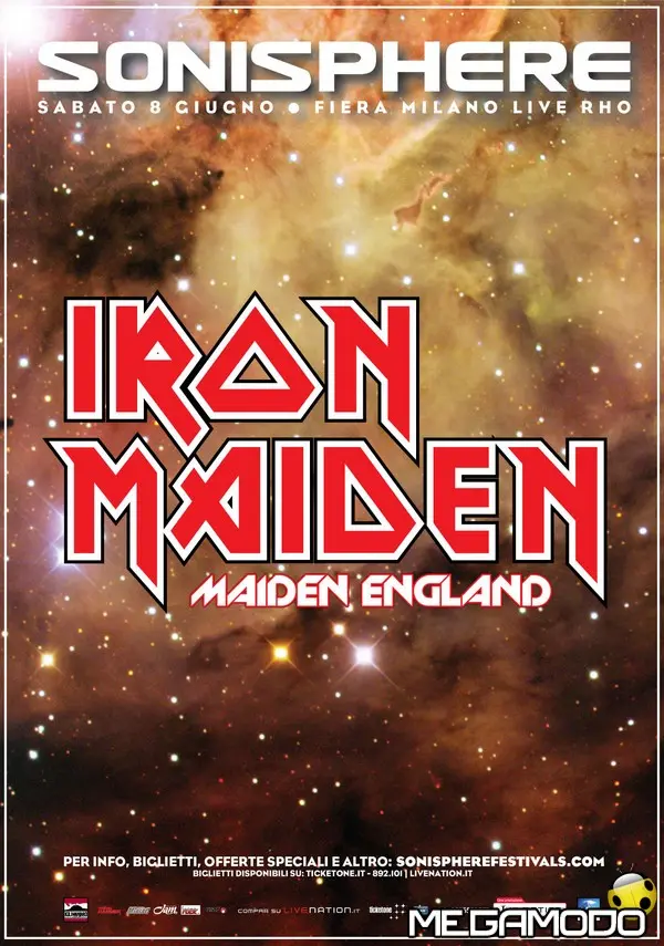 IRON MAIDEN saranno a Milano nell’estate 2013 con il loro MAIDEN ENGLAND tour. Saranno headliner di Sonisphere che si terrà alla Fiera Milano Live il prossimo SABATO 8 GIUGNO. Il MAIDEN ENGLAND TOUR segna il terzo capitolo della storia di IRON MAIDEN, un viaggio che ha avuto inizio nel 2004 con The Early Days DVD e il successivo tour 2005 Early Days Tour. Nel 2008 seguì la seconda parte del progetto con “Live After Death DVD”. Dopodiché la band intraprende l'innovativo “Somewhere Back In World Tour”, che ha visto IRON MAIDEN suonare per oltre due milioni di fan in circa 40 paesi di cinque continenti, viaggiando su un Boeing 757 customizzato, ribattezzato Ed Force One, e pilotato dal cantante Bruce Dickinson, un’avventura che ha poi dato vita al DVD "Flight 666" .