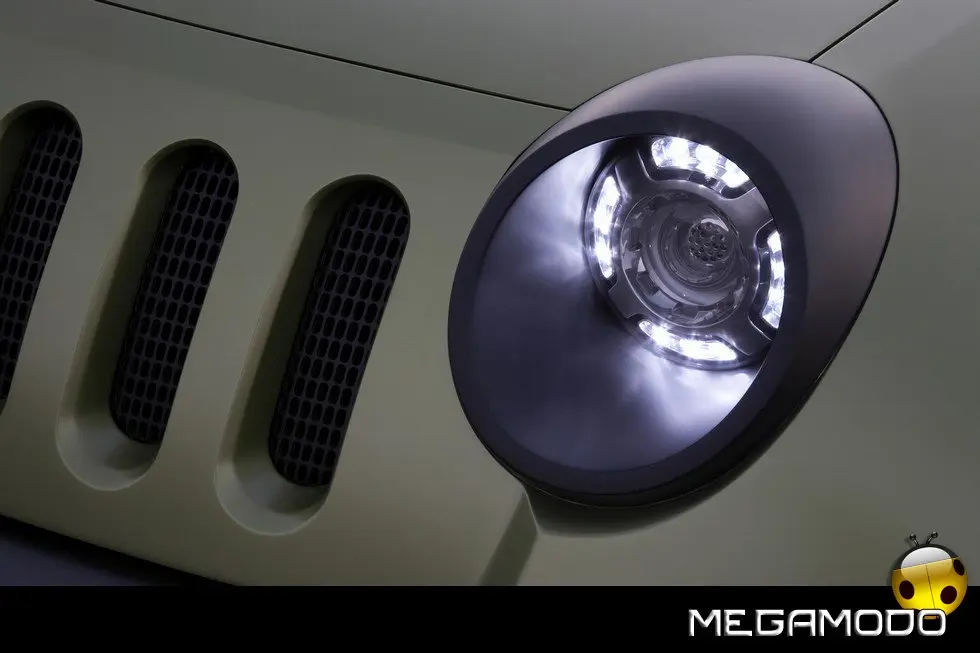 Gli esterni sono caratterizzati da fari anteriori e gruppi ottici posteriori rivestiti in gomma e da grandi prese d’aria dalla forma triangolare inserite nelle portiere.