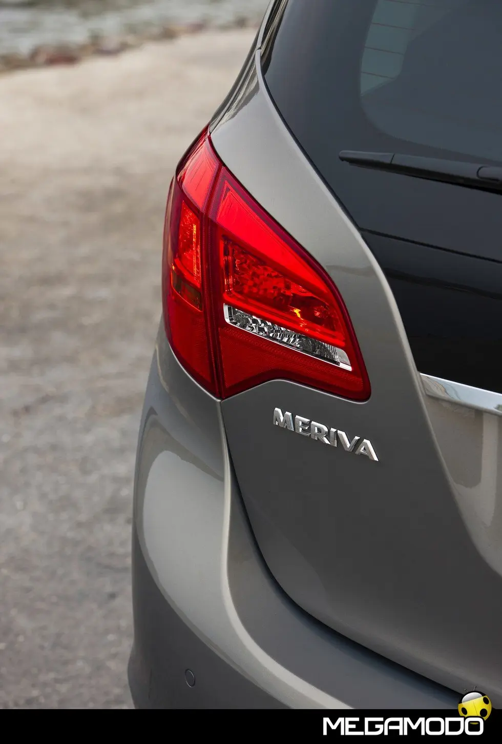 La linea del tetto, più bassa e filante, e il tipico profilo a lama della fiancata sono accompagnati da una linea a onda sul finestrino posteriore che rende la nuova Meriva originale e distintiva. Migliora anche la visibilità dei passeggeri posteriori, soprattutto i bambini.