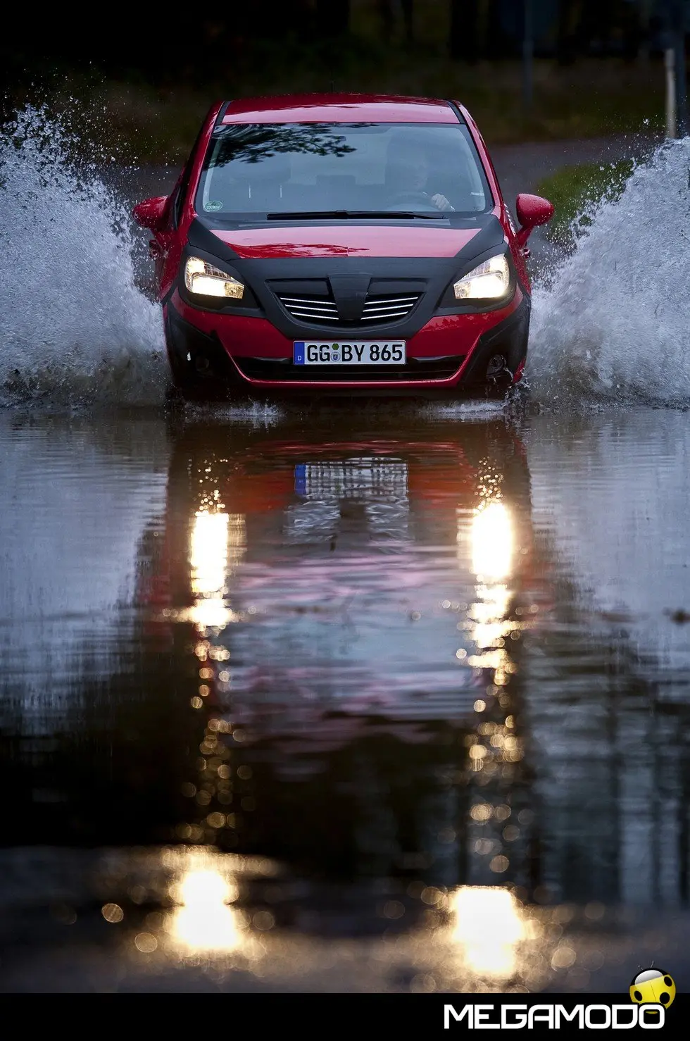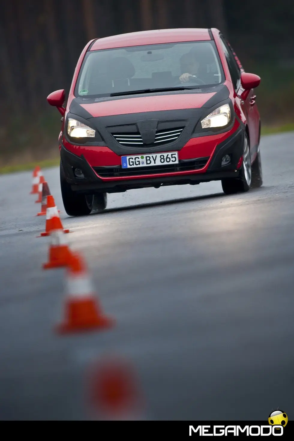 Con i suoi 4288 mm, il passo della nuova Meriva è più lungo di 15 mm rispetto alla prima generazione, la carreggiata anteriore più larga di 39 mm e quella posteriore di 45 mm. Migliorano così manovrabilità e comfort di guida. Asse anteriore e posteriore derivano dalla Zafira, e avvicinano il nuovo monovolume compatto di Opel agli standard della classe superiore. Il servosterzo elettro-idraulico sostituisce il precedente sistema totalmente elettrico. Tra le caratteristiche di sicurezza attiva di serie vi sono l’impianto frenante a quattro dischi, l’ESPPlus il controllo elettronico della stabilità, che in Italia è di serie su tutte le versioni di tutti i modelli della gamma Opel, e il controllo della trazione. I propulsori della nuova Meriva offrono prestazioni efficienti che ribadiscono la strategia Opel del downsizing e della turbocompressione per offrire una reale economia nella guida di tutti i giorni su una vettura confortevole e bilanciata. Si va da 55 kW/75 cv a 103 kW/140 cv. Tutti i motori rispettano la normativa Euro 5.