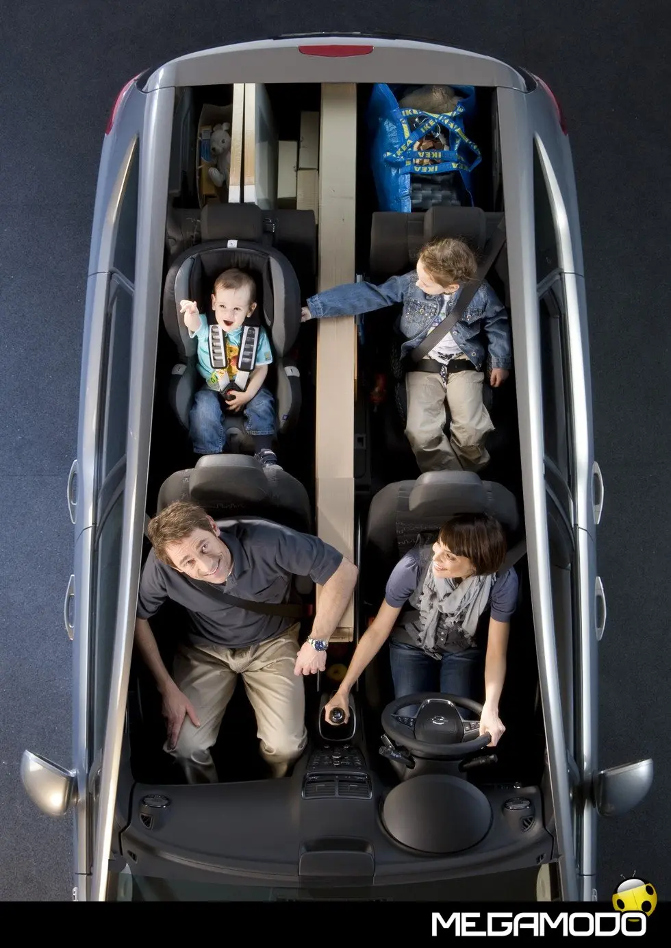 I sedili del sistema FlexSpace permettono ai passeggeri posteriori di avere una seduta più alta rispetto ai passeggeri anteriori e, quindi, una migliore visibilità della strada rispetto alle vetture tradizionali.