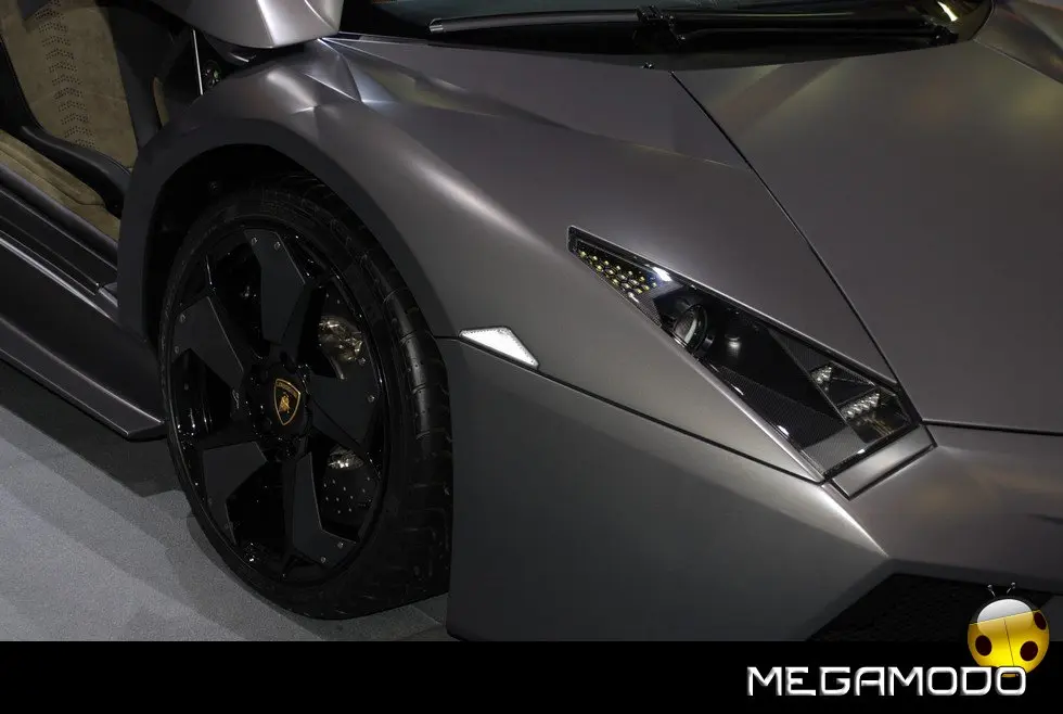 Costruita in fibra di carbonio Pur basandosi sulla Murciélago LP640, titolare di uno straordinario successo, il design esterno della Reventón è completamente nuovo. Come nel modello di base, il rivestimento esterno è realizzato in CFC, un materiale composito a base di fibra di carbonio tanto stabile quanto leggero. I componenti esterni sono incollati e fissati al telaio della Reventón in CFC e acciaio. La parte anteriore è caratterizzata dall’acuto angolo di freccia nel centro e dalle potenti prese d’aria rivolte in avanti. Certo, non alimentano aria direttamente alla turbina come in un aereo, tuttavia, tenendo conto dei 650 CV, anche per il raffreddamento dei freni carboceramici e delle pinze a sei pistoncini è necessaria un’abbondante portata d’aria.