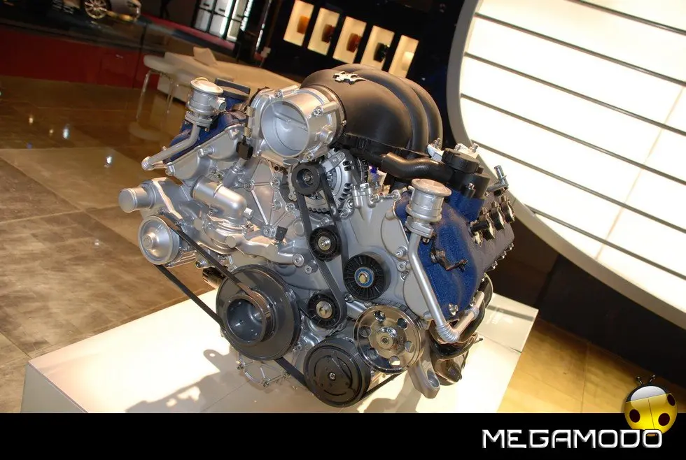 MOTORE – V8 DI 400 CAVALLI Il motore aspirato 8 cilindri a V di 90° di 4244 cm3, compatto e leggero, eroga in modo pronto e graduale 400 CV (295 kW) a 7000 giri/min, pari ad una potenza specifica di 95,2 CV /litro; la coppia massima è di 460 Nm a 4250 giri/min. La distribuzione è a quattro alberi a camme in testa, due per bancata, azionati da catena, con quattro valvole per cilindro comandate da punterie idrauliche. Gli alberi a camme di aspirazione, dotati di un variatore di fase continuo ad alta pressione, sono caratterizzati da un profilo che ne ottimizza l’erogazione sin dai bassi regimi. L’acceleratore è a comando elettronico «Drive by Wire», senza collegamenti meccanici. La disposizione del V8 all’interno dell’asse anteriore assicura un perfetto bilanciamento delle masse fra asse anteriore e posteriore (49% / 51%), a tutto vantaggio del comportamento dinamico della vettura.