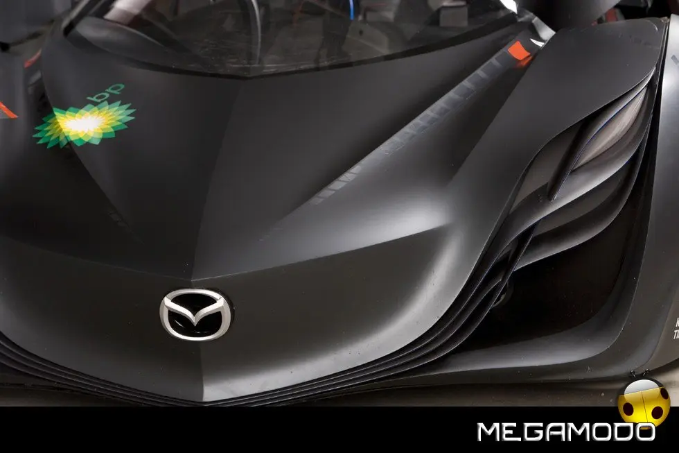 La concept-car Furai, la più recente “new-entry”della apprezzatissima e pluripremiata serie delle concept Nagare di Mazda, festeggia i 40 anni del motore rotativo e di tradizione nelle corse internazionali con un’interpretazione corsaiola del linguaggio stilistico NAGARE. Furai è un tipo di automobile che può essere proposta unicamente da una Casa capace di inserire lo “Spirito di una Vettura Sportiva” in ogni cosa che costruisce, ma con un occhio al futuro e all’ambiente con l’impiego di etanolo (E100) prodotto da BP. Ogni fine settimana, in Nord America corrono più Mazda e più vetture motorizzate Mazda rispetto ad ogni altro brand. Questo perchè ogni berlina, coupè e sportiva Mazda viene davvero progettata con il più alto contenuto possibile di Zoom-Zoom, che è il marchio di fabbrica della compagnia, l’autentica Emozione del Movimento. Tuttavia, Zoom-Zoom va ben oltre la pura prestazione del veicolo. Il look e lo stile espresso da Zoom Zoom possono essere meglio apprezzati già dai primi sviluppi basati su NAGARE , a partire dalla concept-car Mazda Nagare presentata a Los Angeles nel 2006, la Mazda Ryuga, esposta per la prima volta a Detroit proprio un anno fa, la Mazda Hakaze, che ha debuttato a Ginevra l’anno passato, e la Mazda Taiki, star del Motor Show di Tokyo 2007. “Nagare” indica come i futuri modelli Mazda alimenteranno lo spirito Zoom-Zoom mostrando la loro forte affinità per il movimento. I costruttori automobilistici espongono normalmente degli studi stilistici con una minima intenzione, o addirittura nessuna, di utilizzare realmente il tema presentato. Mazda ha un approccio opposto: tutte le concept car Nagare, compresa Furai, contribuiscono a evolvere questo suggestivo linguaggio di superfici per il futuro. Ogni veicolo Mazda incarna lo spirito di una vettura sportiva per realizzare un carattere dinamico Zoom-Zoom autentico. Nagare indica come verrà rappresentata questa impostazione sulle superfici interne ed esterne nei futuri modelli. Invece di una funzione che segue la forma, funzione e forma si fondono in una sola entità. Franz von Holzhausen, Direttore Design MNAO (Mazda North American Operations) responsabile del team che ha creato la Furai, spiega l’idea che è alla base di questa concept-car: “Cercavamo un modo per collegare il gap tra Mazda Motorsports e i modelli di serie della nostra gamma. L’approccio mentale dei sostenitori della vettura stradale e delle macchine da corsa è abbastanza diverso, così l’obiettivo di Furai è trovare un punto d’incontro per questi interessi così disparati”. “E, continua von Holzhausen, Furai realizza tutto questo superando i confini che tradizionalmente hanno differenziato la strada dalla pista. Storicamente, c’è stato un gap tra vetture da corsa specifiche e i modelli omologati stradali – comunemente indicati come supercar – che evocano macchine da corsa su strada”.