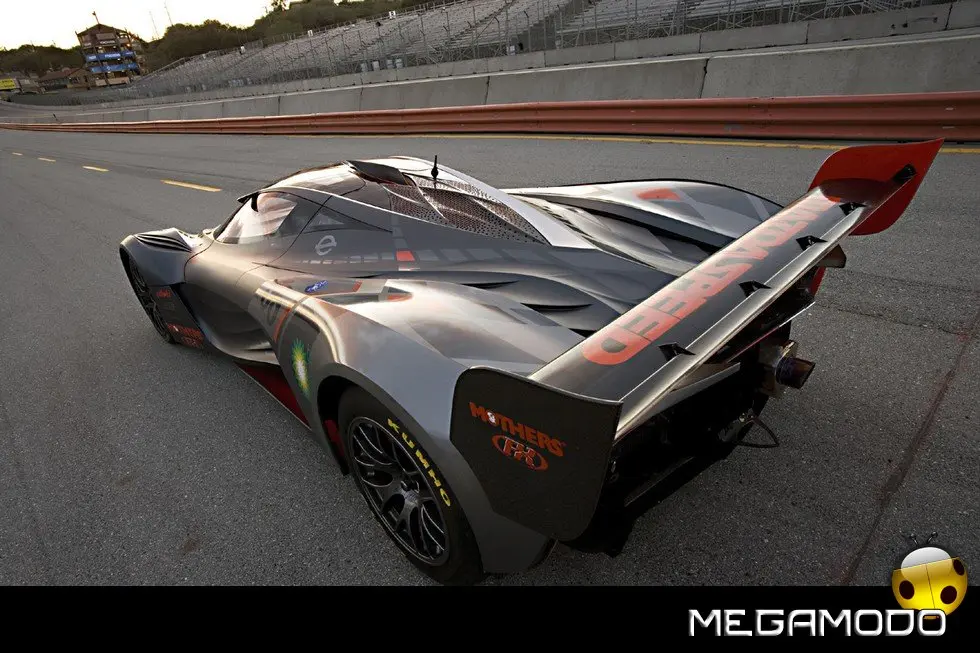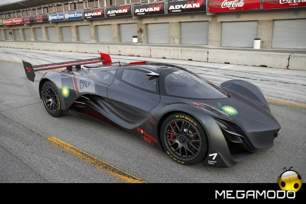 “Una cosa che abbiamo imparato dagli studi CFD è che non abbiamo bisogno di molta ala posteriore per equilibrare la deportanza creata dallo splitter anteriore e dalle forme Nagare modellate nella carrozzeria” spiega von Holzhausen. “L’aria per la combustione è garantita da una variazione del dispositivo “Turbo Tongue” che la Swift ha progettato per l’impiego sulle vetture Indy una decina d’anni fa. Si solleva leggermente rispetto alla superficie del tetto per aspirare aria pulita. Il nostro design finale lavora così bene che abbiamo registrato un brevetto con Swift. Oltre all’aspetto funzionale è anche una vera e propria opera d’arte, e l’abbiamo inserita nel design ”. Aria Group, di Irvine in California, ha avuto la responsabilità di creare i nuovi pannelli in composito e ha lavorato di pari passo con il team interno di Mazda North American Operations per inserirli nello chassis Courage. La finitura è scura metallizzata con accenti rossi e arancio che ricordano la livrea della leggendaria 787B che ha vinto la 24 Ore di Le Mans nel 1991, consentendo a Mazda di essere la prima e finora unica Casa giapponese ad aver mai trionfato in questa classicissima prova di durata. Furai sonda non solo le future possibilità del design, ma guarda avanti anche per quanto concerne i carburanti alternativi. In linea con le iniziative di “Zoom-Zoom Sostenibile” recentemente annunciate da Mazda, e con i passi avanti rispetto alla benzina attualmente in atto in vari ambienti corsaioli, il motore trirotore è stato messo a punto per funzionare con etanolo (alcool etilico) al 100%. Miscele alcool-benzina note come E10 (benzina con il 10% di alcool) e E85 (con l’85% di alcool) sono già da anni ampiamente disponibili per l’impiego stradale. Eliminando la benzina, l’E100 rimuove la dipendenza dalle importazioni di petrolio e migliora le emissioni di scarico di Furai su livelli raramente visti su una vettura di queste prestazioni. John Doonan, manager del team di Progettazione e Sviluppo Motorsport di Mazda, spiega il concetto alla base dell’impiego del carburante alternativo su Furai: “Uno dei principali partner tecnici nella nostra attività sportiva – BP – ci ha aiutato e facilitato nell’impiego di E100. Nel 2007, l’ ALMS imponeva l’uso dell’E10, mentre l’E100 è ora l’unico carburante ammesso nella Indy Racing League, così ci stiamo proiettando in avanti con questa applicazione per guadagnare esperienza e migliorare il profilo ambientale di Mazda. BP ha una grande attenzione ecologica sul mercato, ed è intenzione di Mazda di sostenere la propria immagine di prestazioni Zoom-Zoom dentro e fuori le piste. Mentre il rotativo di Mazda si è dimostrato facilmente adattabile ai vari carburanti alternativi, compreso un importante lavoro con l’idrogeno, è la prima volta che viene attrezzato per l’E100”.
