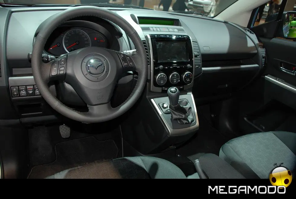 Sono stati mantenuti rispetto alla precedente versione il motore 1.8 benzina che eroga 80Kw/115 CV abbinato ad un cambio manuale a 5 marce ed i due motori turbo diesel common rail MZR-CD con 2 diversi livelli di potenza: 81KW/110 Cv e 105 KW/143 Cv entrambi abbinati ad un cambio manuale a 6 marce. Tutti i motori sono stati perfezionati allo scopo di ridurre il consumo di carburante ed il livello di emissioni di CO2. Mazda5 facelift eredita dalla versione precedente una caratteristica unica, che consente una comunicazione costante tra tutti gli occupanti della vettura, e cioè I sedili con sistema Karakuri e la straordinaria flessibilità nel carico, aggiungendo però un nuovo sistema di navigazione e audio per sempre maggiore facilità di uso e divertimento durante gli spostamenti. E’ infatti dotata di un nuovo sistema di navigazione DVD con un nuovo touch screen da 7 pollici, integrato nel pannello centrale per un’uso più facile e immediato. Il sistema consente anche di usare la telecamera posteriore per parcheggiare senza stress. Un’altra novità è rappresentata da una presa ausiliaria (AUX) e una nicchia rientrante sulla console frontale – per appendere e ascoltare musica da un MP3, attraverso il nuovo sistema audio di Mazda5, un nuovo caricatore CD da 6 dischi integrato per ore e ore di musica non-stop. Se invece doveste avere bisogno di stare in contatto con l’esterno durante i vostri trasferimenti, oggi è disponibile anche un nuovo sistema Bluetooth per il telefono portatile controllato dal volante.