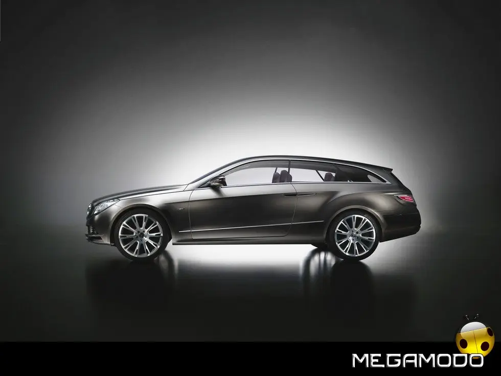 Linee nette e pulite alternate a superfici finemente modellate Una linea dinamica ed affusolata dal frontale alla coda caratterizza il corpo slanciato della showcar, conferendole un look sportivo che trasmette dinamicità anche a vettura ferma. Questa impressione è ulteriormente accentuata dalla lunga linea laterale dei finestrini, con cristalli privi di cornice e dell'interruzione ottica del montante centrale, che traccia un arco continuo dall'anteriore al posteriore della vettura. Il grande vano di carico nella coda risulta integrato nel corpo vettura, rendendola otticamente ancora più allungata e conferendole un senso di leggerezza. I finestrini laterali sono completamente a scomparsa (uno dei tratti genetici fondamentali di ogni coupé Mercedes-Benz) per consentire dall'esterno una visione completa del raffinato abitacolo ricco di materiali pregiati. Un senso di dinamica energia trapela dal profilo cuneiforme della showcar, le cui fiancate sono strutturate da linee nette e decise che sembrano nascere organicamente dalle lamiere, per poi scomparire impercettibilmente. Le superfici accuratamente scolpite della carrozzeria, alternativamente concave e convesse, sono delimitate dalla linea delle spalle, dalla linea di cintura sottostante e da un'ulteriore linea, creando un flusso lineare morbido ed al tempo stesso accentuato con un interessante gioco di luci. Le superfici nette e la struttura arcuata del profilo creano un appassionante gioco di forme. I copriruota risultano incisivamente modellati, ma sono soprattutto i parafanghi posteriori a mostrare, circondando i passaruota, forme quasi sensuali (un classico elemento di design delle Mercedes-Benz del passato), proseguendo elegantemente nelle linee della coda. Per non interrompere il flusso alternato di superfici morbide e spigoli, le maniglie sono state prolungate con un effetto ottico verso la parte posteriore delle portiere, quasi a penetrare nelle fiancate della vettura.