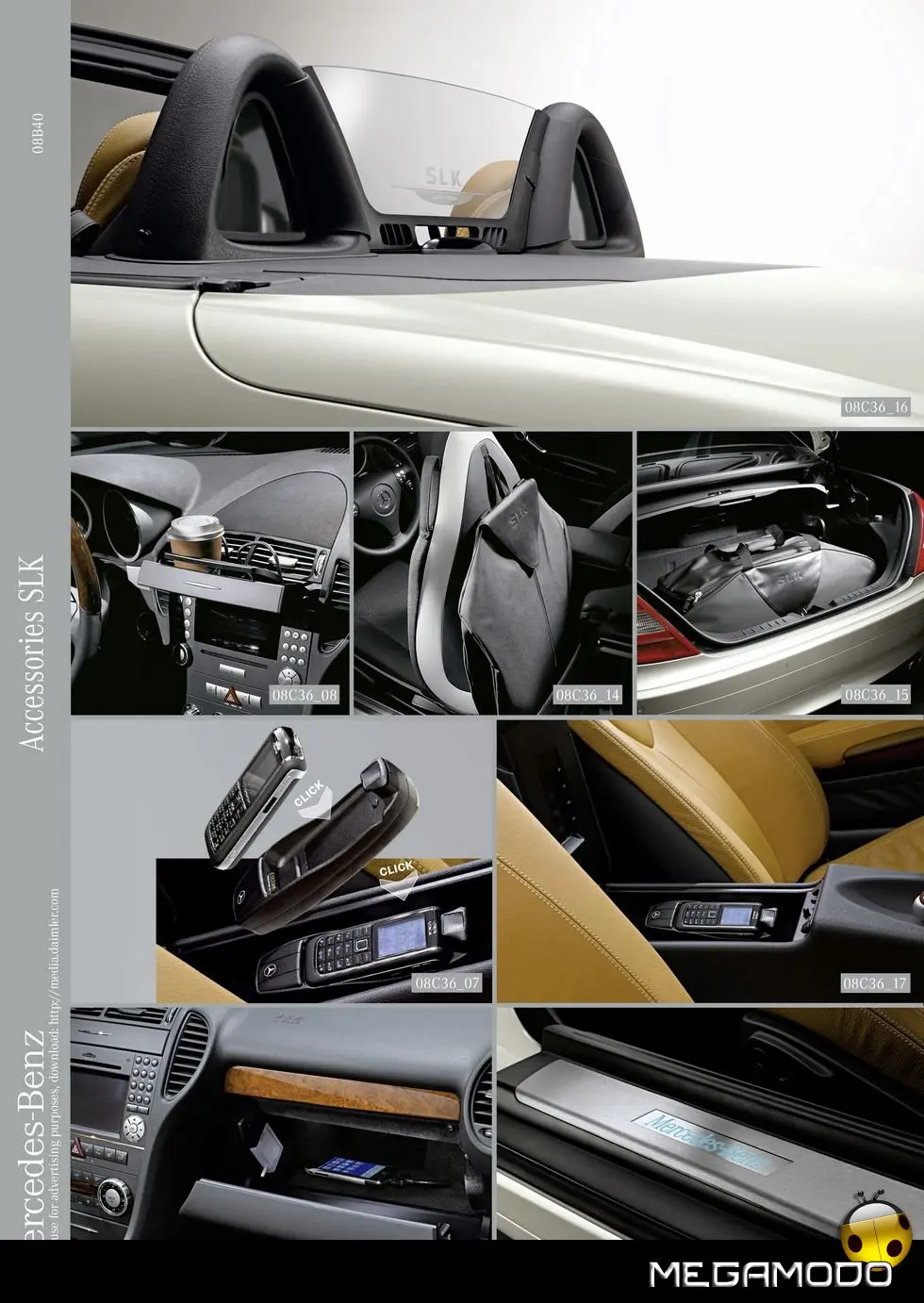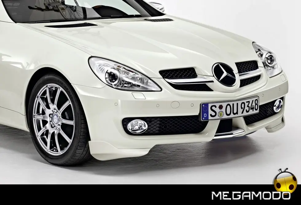 Per festeggiare il lancio della nuova Mercedes-Benz SLK, Mercedes-Benz Accessories GmbH presenta una completa collezione di accessori che esaltano ulteriormente il carattere sportivo del Roadster. La gamma offre esclusivi accessori disponibili in nero, rosso e champagne, una linea completa di orologi ed occhiali da sole, borse da viaggio in colori moderni e pratici accessori da viaggio. I pregiati pullover in cashmere realizzati con filati della migliore qualità sono un capo da indossare con naturale eleganza. Disponibili in nero e champagne, sono facilmente abbinabili e creano un look adatto ad ogni occasione. Irrinunciabili anche le morbide polo in cotone, perfette per qualsiasi stagione. Le tonalità della versione uomo comprendono il classico blu navy ed un particolare viola "fashion", mentre la versione femminile è disponibile in un elegante champagne. Un vero e proprio classico dell'abbigliamento viene reintepretato con originalità: la nuova camicia da uomo facile da stirare, disponibile con manica lunga e corta, offre una valida risposta alla scelta di tutti i giorni. La cravatta in seta blu, con il discreto motivo a righe in lilla, completa il look.