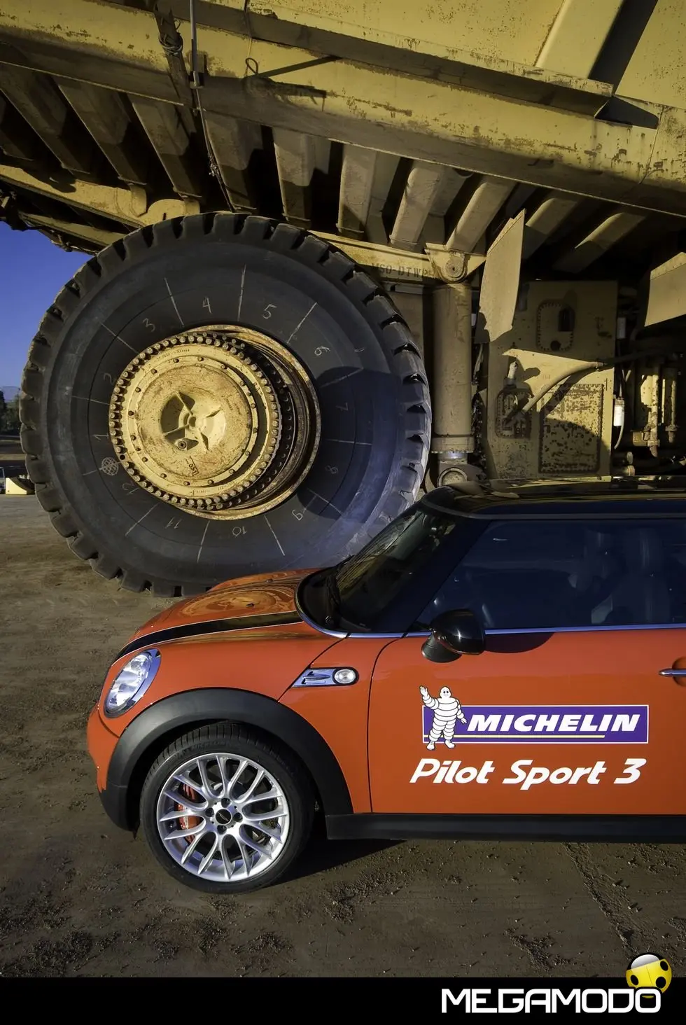 Caterpillar?!? Si qui come dicevamo vengono testati e sviluppati i pneumatici per il colosso americano. Il CAT 797 (il dumper più grande al mondo) paragonabile ad una casa di oltre 7 metri è equipaggiato con il pneumatico dalle dimensioni senza pari: 4,03 metri di altezza, 1,5 metri di larghezza, 5,3 tonnellate di peso. Un sensore GPS all’interno trasmette eventuali anomalie direttamente in un apposito centro di controllo a Clermont-Ferrand. Eh si…i tecnici francesi hanno pensato proprio a tutto!!! Il costo? Appena – si fa per dire – 30.000,00 euro (90.000,00 se trasportato in aereo).