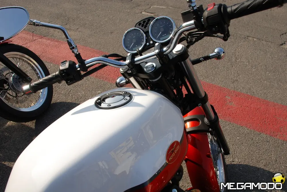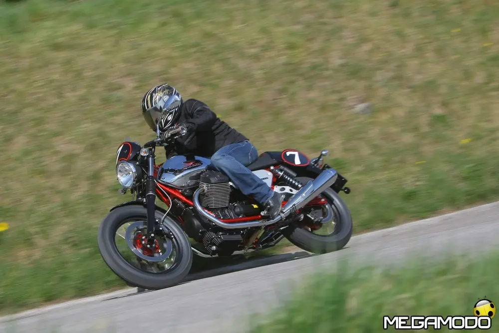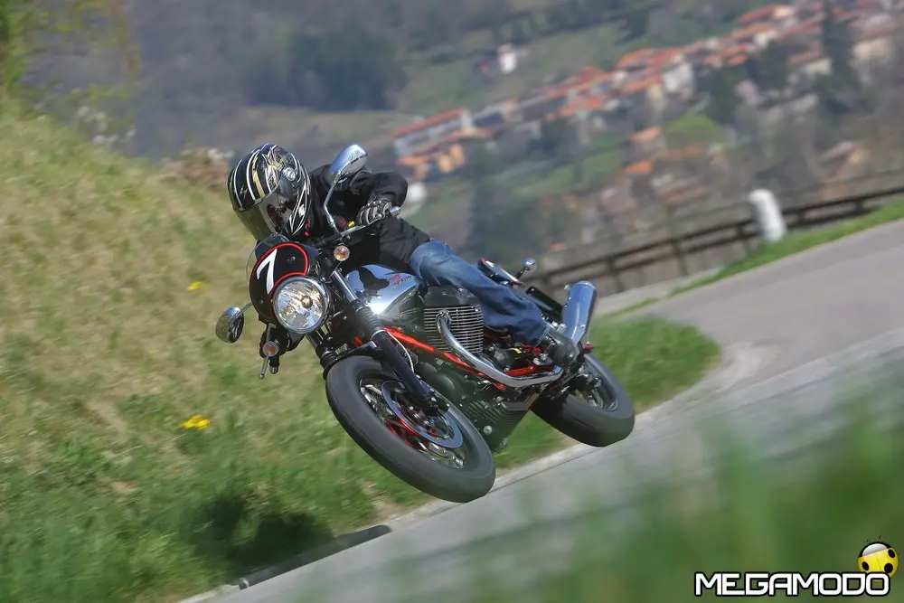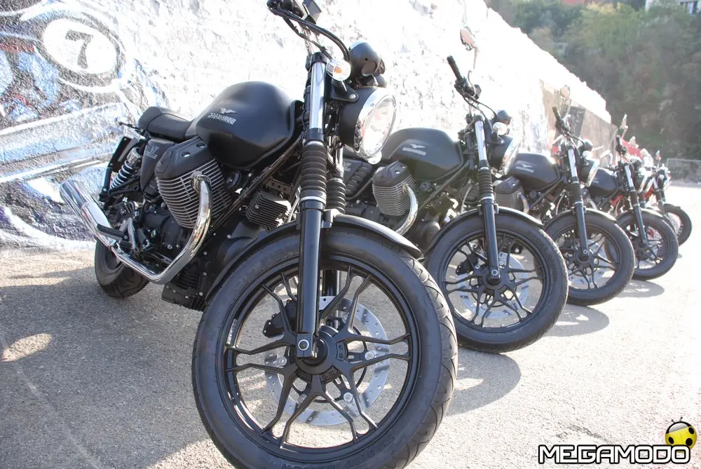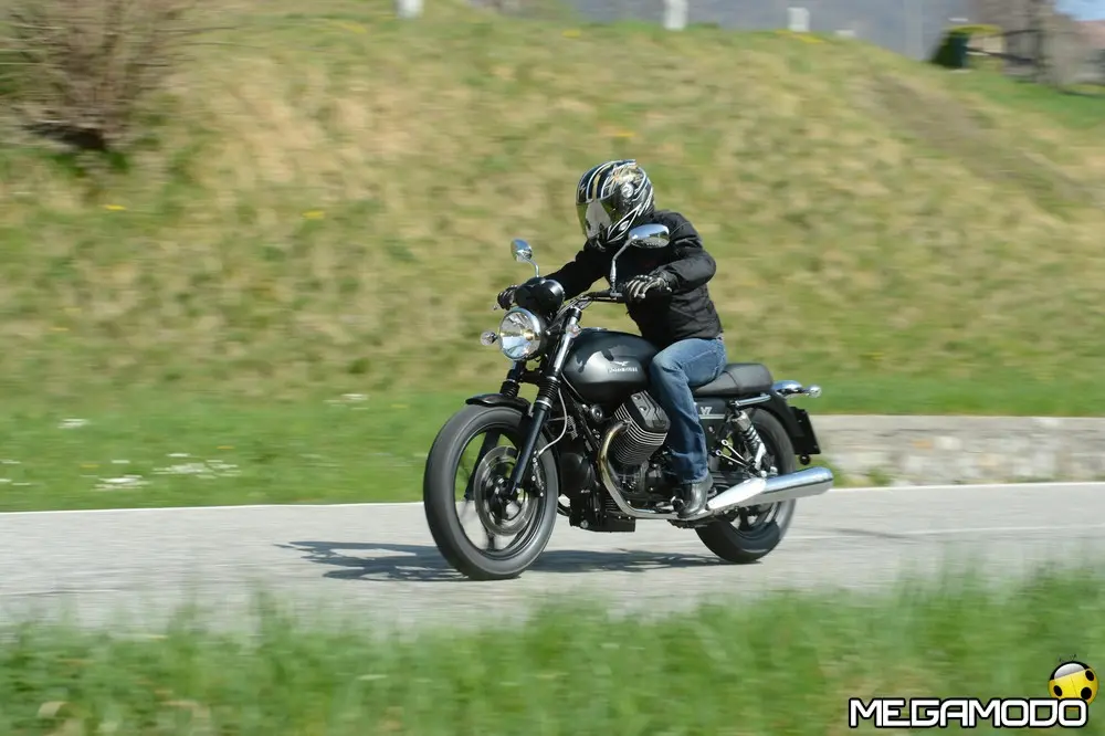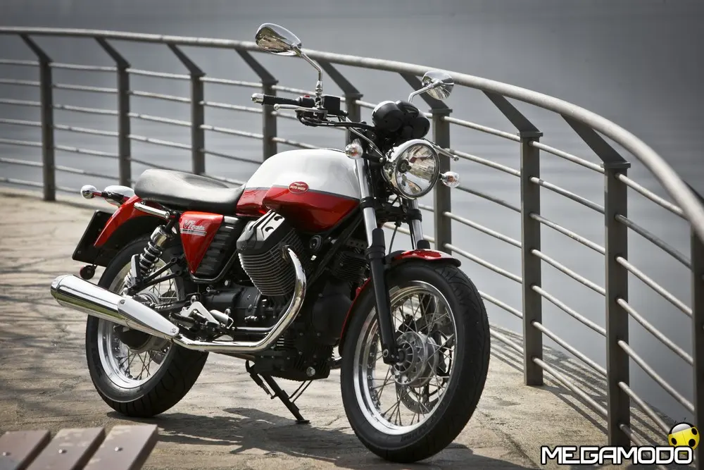 Moto Guzzi V7 Stone: 7.890 Euro Rappresenta il modello d’accesso alla gamma più per l’ecclettismo del suo stile che per essenzialità nella dotazione. Grazie alle nuove ruote in lega leggera e a una grafica minimalista, la nuova V7 Stone strizza l’occhio a un pubblico più eterogeneo rispetto alle altre versioni, chiaramente ispirate, anche nelle scelte cromatiche, alle leggendarie Moto Guzzi del passato. Il colore austero unito al disegno sobrio delle ruote a sei razze sdoppiate valorizza la lucentezza delle cromature e le varie tonalità dei metalli, restituendo all’insieme grande fascino e modernità e rappresenta la base ideale per sviluppare nuove personalizzazioni estetiche. Le ruote in lega leggera hanno permesso un risparmio di 1440 grammi sull’anteriore e 860 sul posteriore, con conseguente abbattimento dell’inerzia giroscopica di circa il 30%, un vantaggio in termini di dinamica traducibile su strada in una maggiore maneggevolezza e velocità d’inserimento in curva. Moto Guzzi V7 Special: 8.390 Euro E’ la più vicina al concetto originario della V7, non solo per il nome identico alla prima V7 firmata da Lino Tonti ma perché ricalca fedelmente la stessa filosofia guida, quella di una moto da turismo ricercata nelle finiture ed esclusiva nelle soluzioni tecnica. Come la progenitrice è avvolta in un concetto cromatico bicolore ed è dotata di preziose ruote a raggi con canale in alluminio che, come nel caso della V7 Stone, contribuiscono a migliorare la dinamica di guida grazie al peso più contenuto rispetto alla V7 Classic. Il nuovo propulsore, irrobustito nell’erogazione, si adatta perfettamente al turismo a medio raggio, e complice i bassi consumi e la maggiore capacità del serbatoio, permette un’autonomia di marcia da ammiraglia, ruolo che può tranquillamente interpretare una volta equipaggiata con borse e parabrezza, accessori che ben di armonizzato con il design d’insieme della V7 Special.