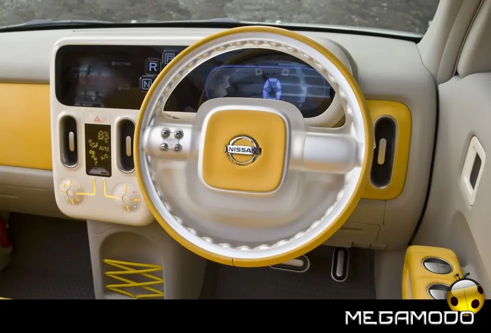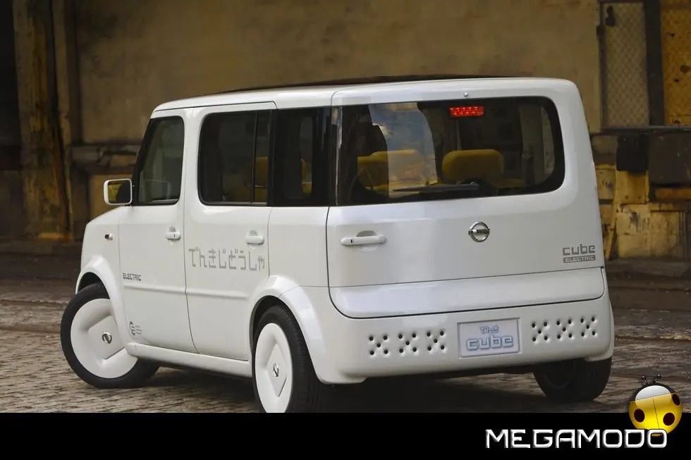 Benché il modello di serie preveda tre file di sedili, il concept Denki Cube ne ha solo due; il passo è stato allungato di 24 cm per fare spazio alle celle delle batterie. I divanetti sono stati pensati con creatività appositamente per l’auto, come pure il volante, il cruscotto – che ospita i pulsanti del cambio – i pannelli delle porte e l’allestimento dell’area di carico. Ma la differenza più grande tra la Cube di produzione e Denki Cube Concept è invisibile agli occhi: al posto del motore standard a benzina da 1,3 litri con 4 cilindri in linea, ci sono un’unità di propulsione elettrica e batterie laminate agli ioni di litio sistemate sotto il pavimento e i sedili.