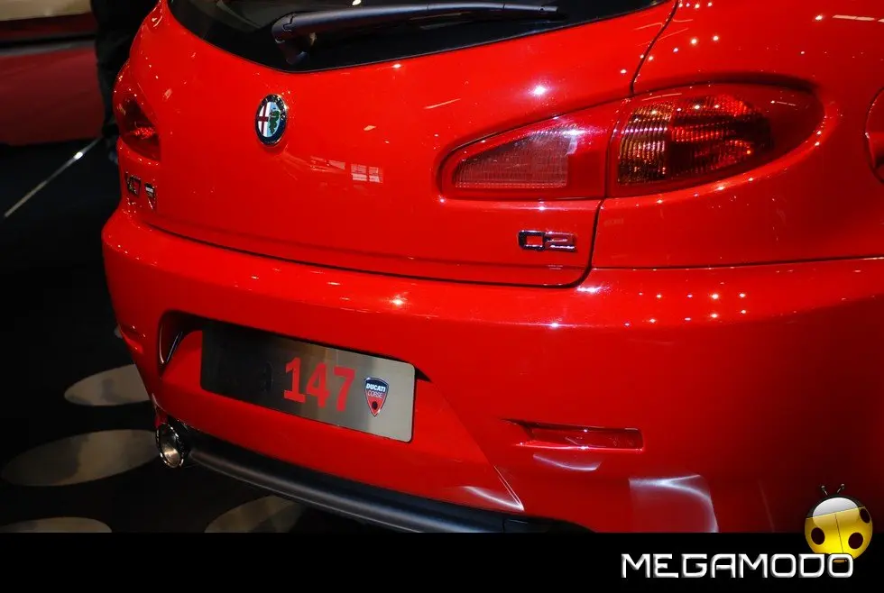 A Bologna sono esposte due versioni della nuovissima Alfa 147 Ducati Corse, una Serie Speciale nata dalla proficua collaborazione tra due grandi marchi italiani che hanno scritto pagine memorabili nella storia delle competizioni internazionali. La serie speciale sarà prodotta in tiratura limitata. L’Alfa 147 Ducati Corse è equipaggiata con il nuovo motore 1.9 JTDM da 170 CV che accelera da 0 a 100 Km/h in appena 8 secondi e raggiunge una velocità massima di 215 Km/h. Il potente motore 1.9 JTDM 170 CV è abbinato al sistema “Q2“ (Differenziale Autobloccante anteriore) che aumenta sensibilmente la tenuta di strada, la trazione e la stabilità in rilascio e, allo stesso tempo, attenua il sottosterzo in accelerazione e gli interventi dei controlli elettronici.