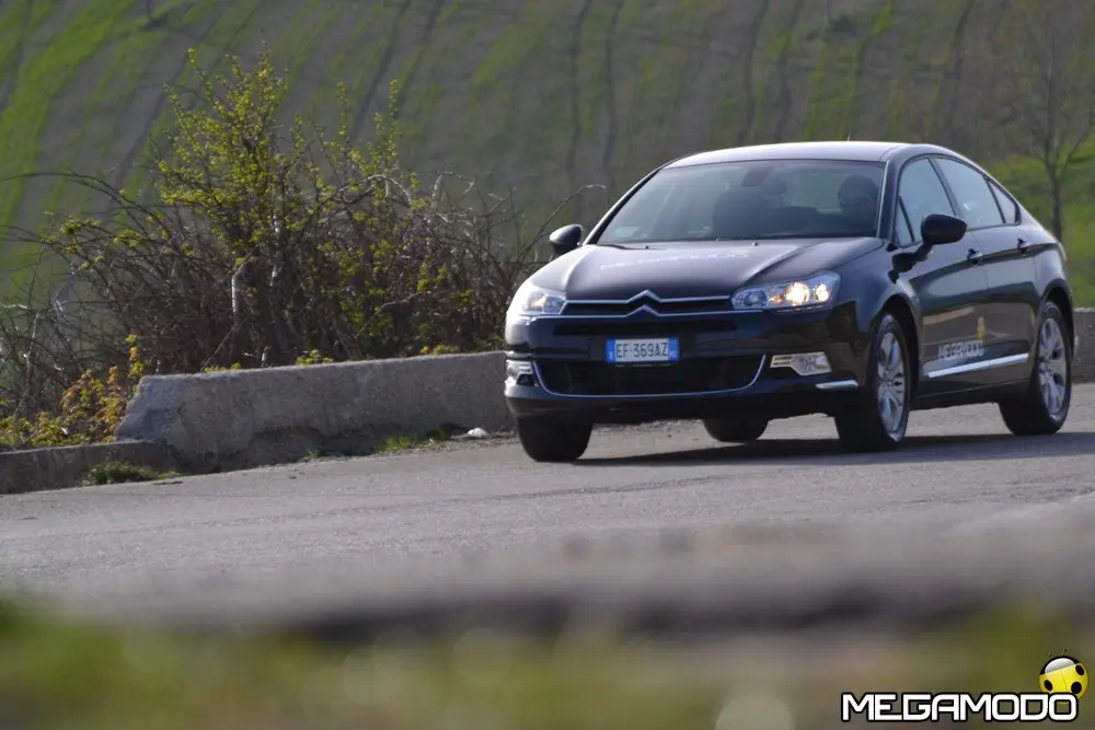 Sensazioni di guida e sospensioni Il comfort di seduta "à la carte", rende senza dubbio l'esperienza di guida molto piacevole e rilassante. I treni della nuova C5, che adottano le soluzioni tecniche innovative applicate su C6, garantiscono un confort e una tenuta di strada di altissimo livello. Il suo comportamento su strada è esemplare in qualunque circostanza, e anche su fondi dissestati o a gobbe. La precisione di traiettoria nell'affrontare una curva, abbinata alla fluidità nelle manovre, offrono uno sterzo di riferimento. Tutto ciò è reso possibile grazie alle innovative sospensioni che equipaggiano la nuova C5, infatti per la prima volta in questo segmento, sono state proposte due tipi di sospensioni. Una sospensione metallica si aggiunge all'offerta di sospensione Idrattiva III+. Questa doppia offerta permette alla nuova C5 di soddisfare qualunque esigenza di sensibilità in termini di guida, sempre con i benefici dell’esperienza Citroen in materia di sospensioni. La nuova C5 propone quindi un livello di comfort raro, e degno di una grande stradista, ottimo dinamismo, agilità, confort dello sterzo e tenuta di strada di alto livello. L'avantreno e il retrotreno, associati alle ultime innovazioni nell’ambito dei sistemi pilotati di controllo della traiettoria consentono al veicolo un livello di sicurezza attiva ineccepibile. Questa sospensione è disponibile sin dalla fascia d'ingresso della gamma della nuova C5. La sospensione Idrattiva III+ della nuova C5 risolve il conflitto tra comfort verticale e tenuta di scocca, adattandosi alle varie situazioni. Essa prevede due stati di rigidità e di ammortizzamento, che permettono una gestione delle forze della sospensione in tempo reale, per un adattamento ottimale alle sollecitazioni della strada e del conducente. I captatori del veicolo (angolo volante, livello d’accelerazione e di frenata, escursione delle ruote...) permettono di ricomporre in tempo reale la dinamica del veicolo, e di pilotare i passaggi tra stato flessibile e stato rigido. Quindi, quando il veicolo viene poco sollecitato, la sospensione è prevalentemente in modalità flessibile; quando viene sollecitato dal conducente o dalla strada, passa in modalità più rigida. Con un comando posto sulla console centrale è possibile accedere anche a una modalità “sport”, forse troppo ambiziosa per una macchina del genere, che permette al conducente di selezionare un comportamento più dinamico, privilegiando la tenuta di scocca rispetto al confort del veicolo. Motorizzazioni Tralasciando momentaneamente i molteplici accessori di serie e i tanti optional, la nuova gamma C5 offre motorizzazioni che si adattano ad una clientela molto ampia, anche se quelle base non offrono grande prestazioni in termini di velocità e accelerazione ma di sicuro ripagano in termini di consumo