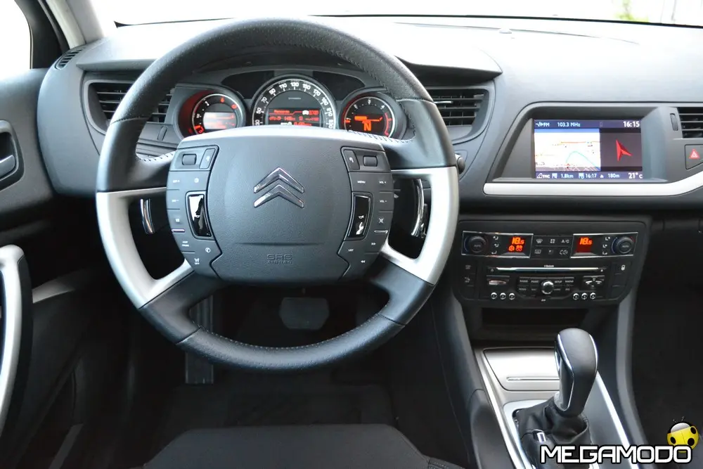 Sedili che soprattutto nella versione elettrica presentano numerosissime regolazione per consentire al guidatore di sentirsi un tutt'uno con l’auto, beneficiando anche della funzione massaggiante, compresa nell' equipaggiamento che include anche la funzione "sedili riscaldati". La posizione di guida influisce molto sul comfort di un'auto ma la stessa importanza è data anche alla posizione e alla funzionalità del volante. Proprio il volante è uno dei segni distintivi della creatività marchiata Citroen. Si tratta di un volante di 2ª generazione, un'esclusiva Citroën. E' possibile accedere ai comandi di guida (funzioni limitatore e regolatore di velocità, gestione del computer di bordo) e ai comandi di comfort normalmente usati dal conducente (radio, telefono, comando dello schermo centrale) continuando a tenere le mani sul volante; questi risultano visibili a colpo d'occhio, anche di notte, grazie alla retroilluminazione dei pittogrammi. Su alcuni tasti sono previsti dei riferimenti tattili, che permettono di utilizzarli senza distogliere lo sguardo dalla strada, un'ottima scelta in termini di sicurezza, nonostante sia un tipo di volante forse un po' troppo innovativo a cui il guidatore deve abituarsi, inizialmente non sarà molto piacevole guidare con la console centrale del volante fissa. Senza dubbio però, potrà concentrarsi alla guida con nessun rumore che non siano quelli da lui scelti (navigatore o stereo), dal momento che anche il comfort acustico è stato studiato meticolosamente dalla Citroen. La nuova C5 prevede una struttura inedita per il posizionamento degli aeratori che, oltre alla connotazione stilistica, consentono la personalizzazione del confort termico. La climatizzazione automatica è disponibile di serie e prevede un sistema di diffusione soft, che avvolge i passeggeri anteriori del veicolo con un velo d'aria omogeneo. Ognuno dei due passeggeri anteriori può quindi disporre dei propri comandi di climatizzazione, senza dimenticare i passeggeri posteriori, a cui sono destinate delle uscite dell'aria, situate nello spessore dei montanti centrali.