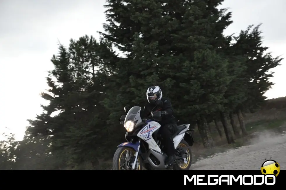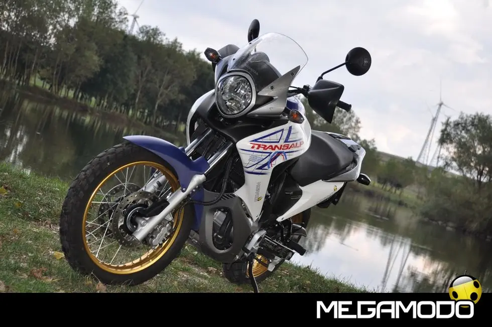 Colorazioni 2010 - Shasta White/Carnelian Red Metallic - Shasta White/Moody Blue Metallic con cerchi color oro (anche versione ABS) - Pearl Concours Black (anche versione ABS) Le Principali Caratteristiche - Styling aggressivo, che ne valorizza le linee per una sofisticata immagine da vera Adventure Sport. - Potente e regolare V2 da 680 cc con iniezione elettronica, raffreddamento a liquido e testate a 4 valvole, per una perfetta erogazione della potenza in tutte le condizioni. - Robusto paramotore in resina stampata, per una perfetta protezione dei componenti inferiori da sporco e ghiaia. - Efficiente sistema catalizzante a basse emissioni HECS3 con sonda lambda, per una piena conformità ai parametri EURO-3. - Componenti di telaio, sospensioni e ciclistica studiati per mantenere dimensioni compatte e migliorare la maneggevolezza del mezzo. - Versione con ABS Combinato per una sicurezza e un controllo assoluti. - Splendido faro multi-reflector, con lampade separate per abbagliante e anabbagliante. - Strumentazione compatta, con ampio quadrante del contagiri e chiare letture su display LCD per tachimetro, contachilometri, parziale e totale, orologio e livello carburante. - Sospensione posteriore regolabile, che consente al pilota di adattare in modo ideale la moto alle caratteristiche del terreno od al carico. - Borse laterali da 29 litri e bauletto da 45 litri (opzionali) per incrementare la capacità di carico. - In futuro sarà disponibile anche una serratura aggiuntiva per il bauletto, per utilizzare la stessa chiave per l'accensione e il bauletto. - Gli accessori originali Honda sviluppati per la Transalp comprendono: pannelli colorati per le borse laterali, elegante quadro strumenti con look alluminio, protezione serbatoio e modanature per la carenatura, parabrezza più alto, kit fari fendinebbia (anteriore e posteriore), manopole riscaldate, cavalletto centrale e navigatore satellitare Honda. Il prezzo? Per portarla a casa occorrono 7.600 euro.