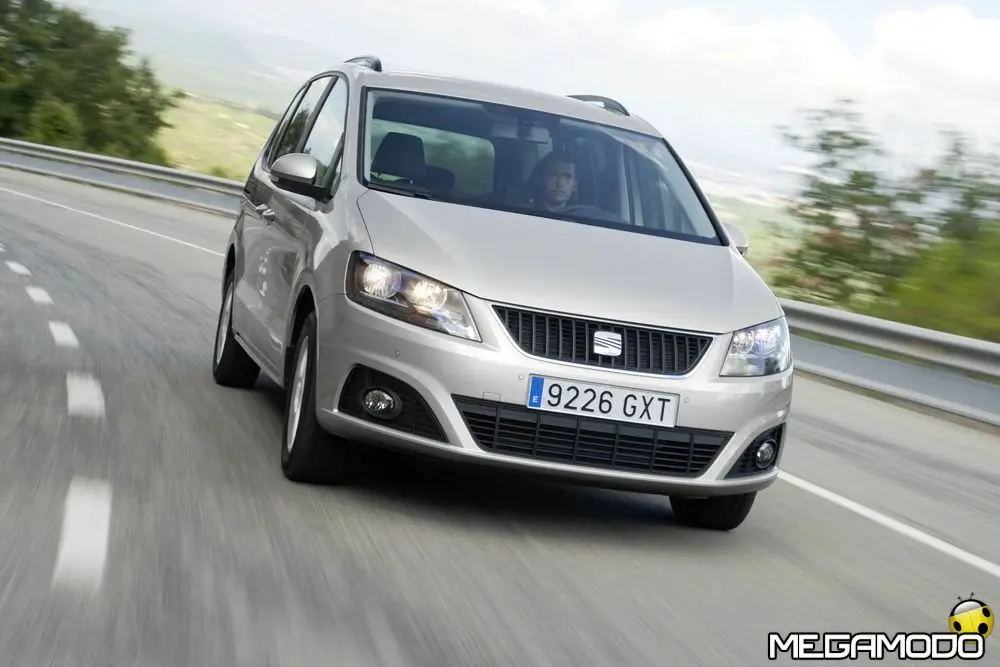 Lo sterzo elettromeccanico è determinante per garantire la sicurezza di guida. Abbinato al sistema di controllo della stabilizzazione ESP, aiuta il guidatore in caso di manto stradale irregolare e in fasi di guida particolarmente impegnative, riducendo o aumentando nella misura adeguata la servoassistenza. Nella parte posteriore della Alhambra è montato un asse multilink a quattro bracci, collegato a un telaio ausiliario in alluminio. La carreggiata è stata ampliata a 1,62 metri, ben 9 centimetri in più rispetto al modello precedente. La sofisticata struttura dell'asse posteriore separa nettamente il sostegno delle forze laterali e longitudinali. I bracci longitudinali assorbono le forze motrici e di frenata e, grazie all'assetto relativamente morbido, garantiscono un buon comfort di marcia. I tre bracci trasversali di ogni ruota – braccio della sospensione, braccio trasversale superiore e traversa – sono invece collegati rigidamente al supporto dell'asse per trasmettere le forze laterali in modo diretto e preciso alla carrozzeria. Tutti i bracci e le traverse sono realizzati in acciaio ad alta resistenza. Le molle elicoidali e gli ammortizzatori sono separati, il che ha consentito ai progettisti di disporre di ampia scelta nella taratura. Le ruote e i freni La nuova Alhambra Reference dispone di ruote da 6,5 J x 16 con pneumatici da 205/60. I cerchi sono realizzati con tecnologia flow forming, che li rende particolarmente leggeri. Nell'allestimento Style, sono montati cerchi in lega dello stesso formato, con pneumatici 205/60. A richiesta, per la Style, si possono avere anche cerchi 7 J x 17 con pneumatici da 225/50. Tutti gli pneumatici sono dotati di caratteristiche di funzionamento di emergenza: uno strato protettivo all'interno del battistrada blocca le forature consentendo così di proseguire, con la dovuta cautela, la guida. Di serie è fornito anche un indicatore di controllo che segnala eventuali perdite di pressione degli pneumatici. La nuova Alhambra è dotata di grandi freni a disco autoventilanti. Quelli anteriori hanno un diametro di 312 mm (314 mm con il cambio DSG), sull'asse posteriore le pinze lavorano su dischi con un diametro di 282 mm. I freni anteriori sono realizzati in maniera innovativa e garantiscono una resistenza termica maggiore e spazi di frenata ridotti. Il freno di stazionamento elettromeccanico agisce sull'asse posteriore. Il sistema di controllo elettronico della stabilizzazione ESP, disponibile di serie, è di ultima generazione. Integra la funzione di stabilizzazione di vettura e rimorchio che, in caso di sbandamento, provvede a frenare le ruote in fase contraria alle oscillazioni; il sistema è anche dotato di un assistente per le partenze in salita. In caso di frenate a fondo, le luci di emergenza si attivano automaticamente.