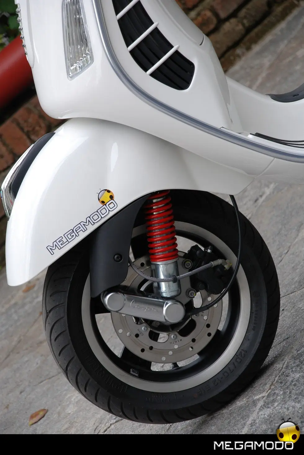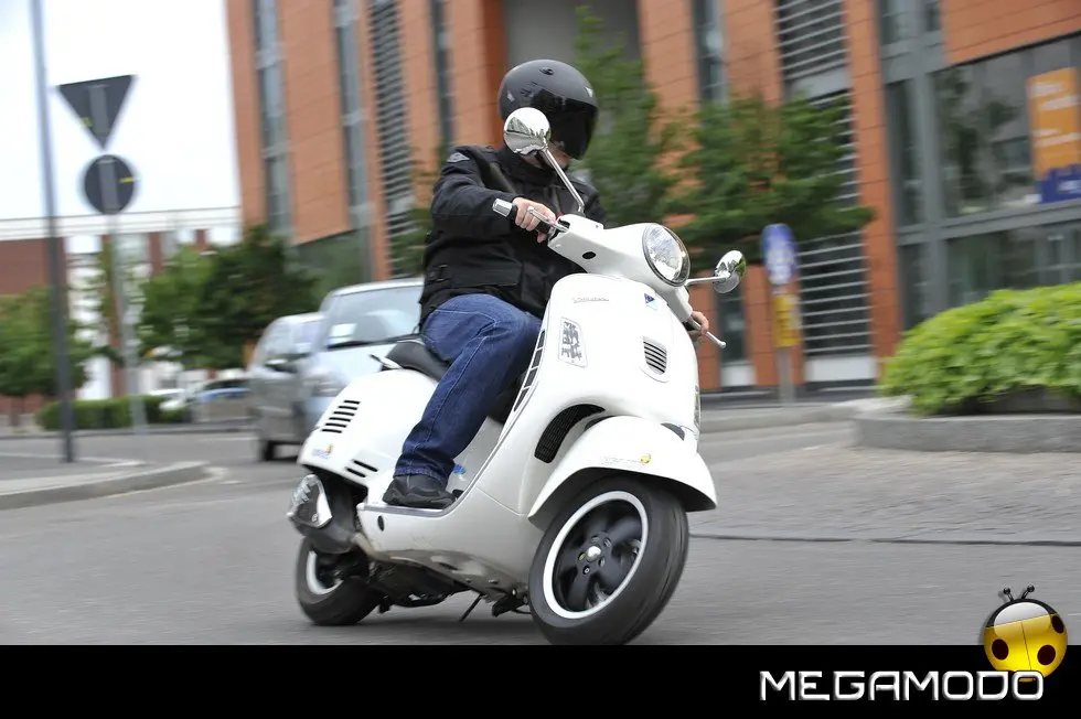 La nuova Vespa GTS 125 Super è veloce, scattante e grintosa, fluida nella guida grazie all’iniezione, ma anche silenziosa e rispettosa dell’ambiente: all’avviamento il sistema a ruota libera in bagno d’olio riduce la rumorosità; durante la marcia invece la minor emissione di rumore è affidata alla nuova copertura carter motore che allo stesso tempo consente un miglior raffreddamento nel vano trasmissione. Alla rigidità della scocca in acciaio, Vespa GTS 125 Super associa una ciclistica che si caratterizza per le ruote da 12” gommate con pneumatici da 120/70 (anteriore) e 130/70 (posteriore). La sospensione anteriore adotta la classica bielletta oscillante, elemento tipico della storia di Vespa, che sul pavé mostra tutti i suoi limiti ripercuotendo sul corpo le asperità del terreno. Al posteriore invece lavorano due ammortizzatori idraulici regolabili nel precarico molla che sono fissati al carter trasmissione e alla staffa supporto marmitta. Decisamente molto più funzionali!! La strumentazione è chiara e ben leggibile in ogni situazione. Nota di merito per gli specchietti retrovisori, davvero molto belli. La GTS 125 Super sarà disponibile dai concessionari a partire da metà maggio in quattro colorazioni: Montebianco, Nero Lucido, Rosso Dragon e Giallo Lime. Per chi volesse personalizzarla saranno disponibili due differenti parabrezza, due bauletti, il portapacchi anteriore e posteriore, il telo coprigambe e un set di cromature aggiuntive. Il prezzo? 4.500 euro franco concessionario, che grazie agli ecoincentivi scende a 4.000.