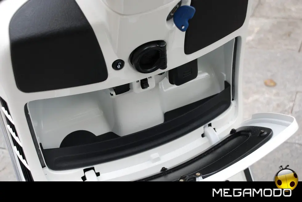 SCHEDA TECNICA: Motore: monocilindrico Piaggio 4 tempi 4 valvole, iniezione elettronica, catalizzato Cilindrata: 124 cc Alesaggio/Corsa: 57/48,6 mm Potenza max all’albero: 11 KW a 9.750 giri/min (14,9 CV) Coppia max: 12 Nm a 7.500 giri/min Carburante: benzina senza piombo N.O.R. 95 min Distribuzione: monoalbero a camme in testa – 4 valvole (SOHC) Alimentazione: iniezione Elettronica P.I. (Port Injected) di tipo alfa/N con sistema closed loop mediante sonda lambda allo scarico e catalizzatore a tre vie Accensione: elettronica a scarica induttiva Raffreddamento: a liquido mediante pompa elettrica Lubrificazione: carter umido, pompa a lobi comandata da catena; filtraggio in aspirazione e mandata Avviamento: elettrico con ruota libera in bagno d’olio Cambio: variatore automatico CVT con asservitore di coppia Frizione: automatica centrifuga a secco con tamponi smorzatori Struttura portante: scocca in lamiera d’acciaio con rinforzi strutturali saldati Sospensione anteriore: monobraccio con ammortizzatore idraulico bicamera con molla coassiale Sospensione posteriore: molle elicolidali con precarico regolabile (4 posizioni) e 2 ammortizzatori idraulici a doppio effetto. Freno anteriore: disco ø 220 mm Freno posteriore: disco ø 220 mm Pneumatico anteriore: tubeless 120/70-12” Pneumatico posteriore: tubeless 130/70-12” Lunghezza: 1.930 mm Larghezza: 755 mm Passo: 1.370 mm Altezza sella: 790 mm Capacità serbatoio carburante: 9,5 l Omologazione: Euro 3