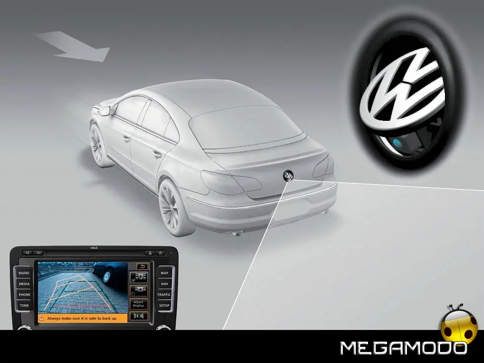 Sistemi radio e di navigazione Per la Passat CC viene proposta la più recente generazione di sistemi radio e di navigazione. L'impianto alto di gamma – RNS 510 – dispone di tecnologia touchscreen a comandi intuitivi e di un navigatore supportato da hard disk. In abbinamento al sistema di assistenza al parcheggio "Rear Assist", quando si viaggia in retromarcia le immagini di ciò che circonda la parte posteriore della Passat CC vengono trasmesse sullo schermo da un'apposita telecamera (integrata nell'emblema VW). Un'ulteriore novità è il Mobile Device Interface (MDI), che tramite connettore USB permette di collegare lettori iPod nonché numerosi altri lettori MP3 e DVD al sistema audio della Passat CC. Il connettore USB si trova nel cassetto portaoggetti. La gestione avviene tramite la radio o il sistema radio-navigatore della vettura. I titoli dei brani vengono visualizzati nel display.