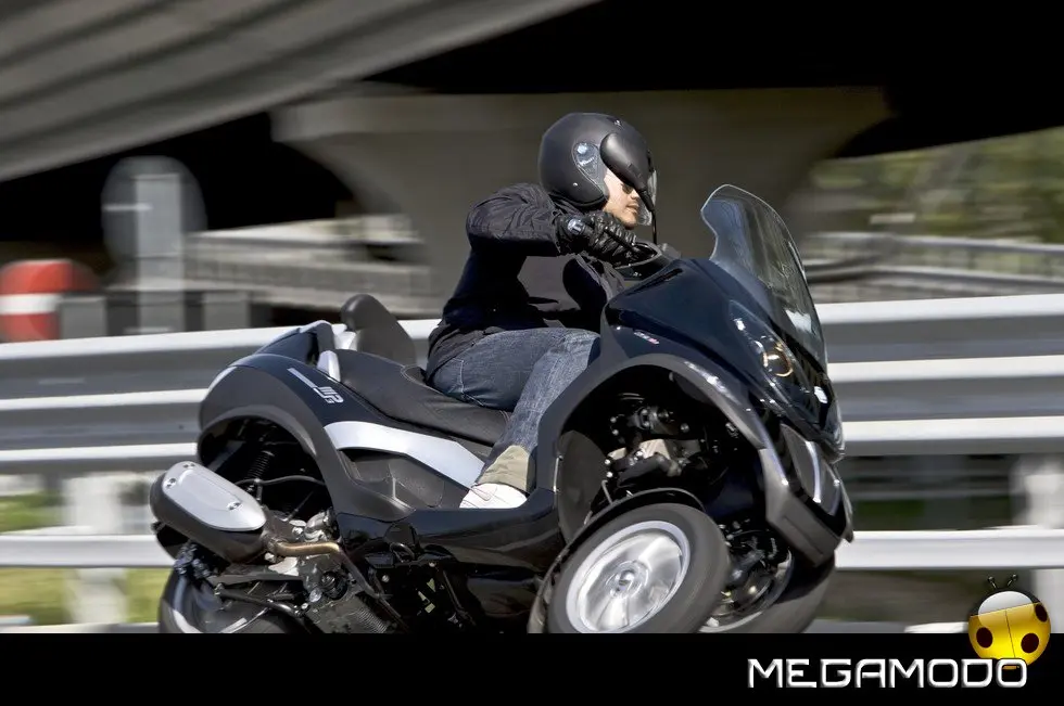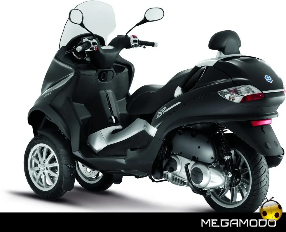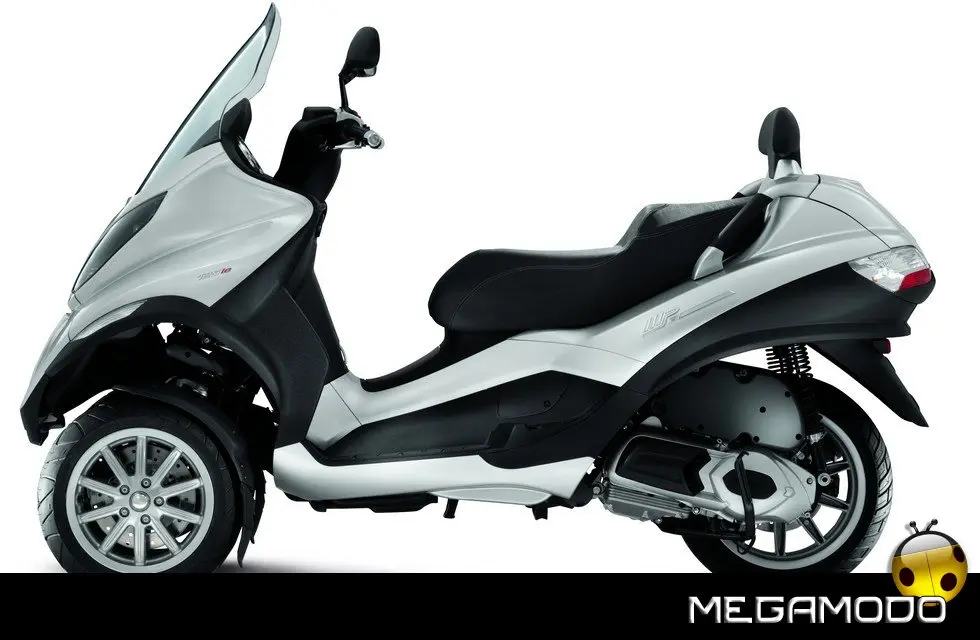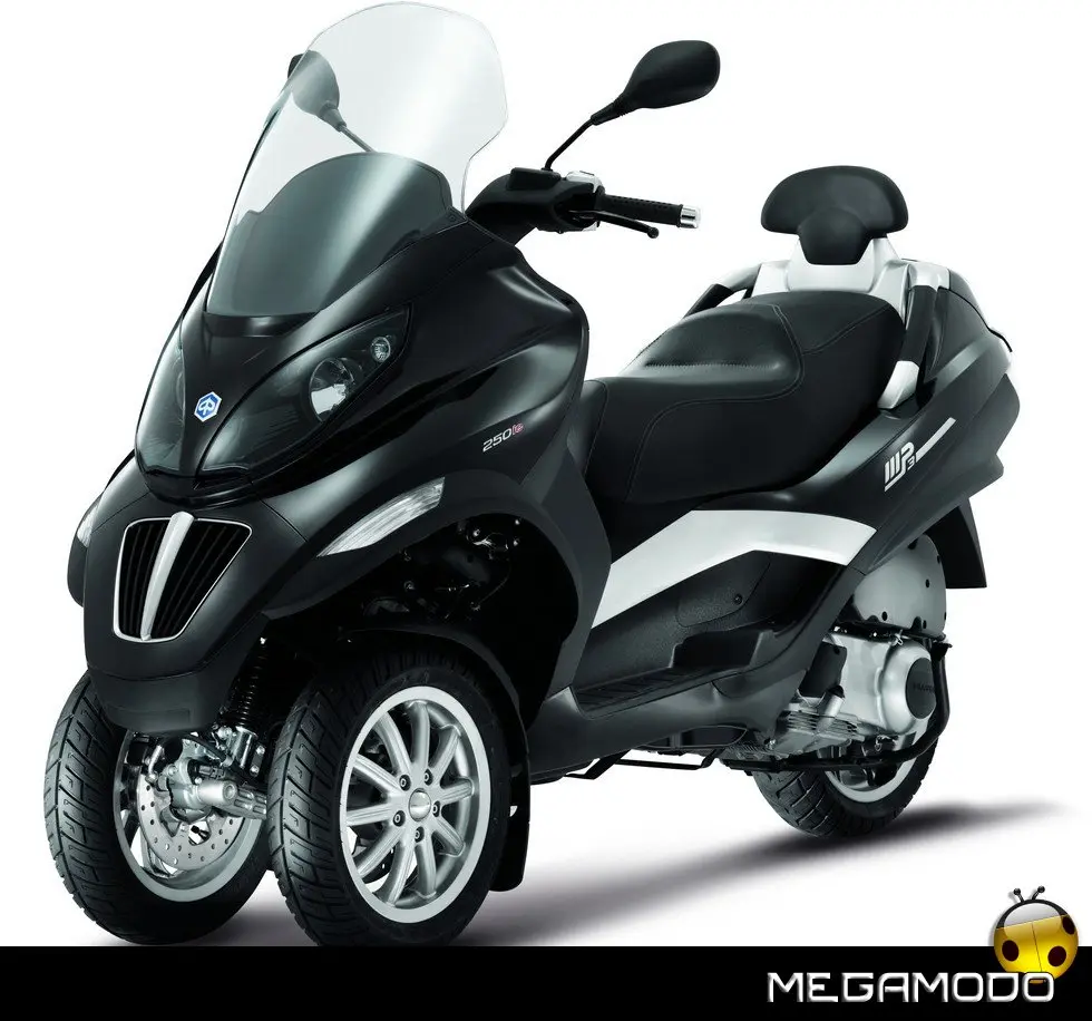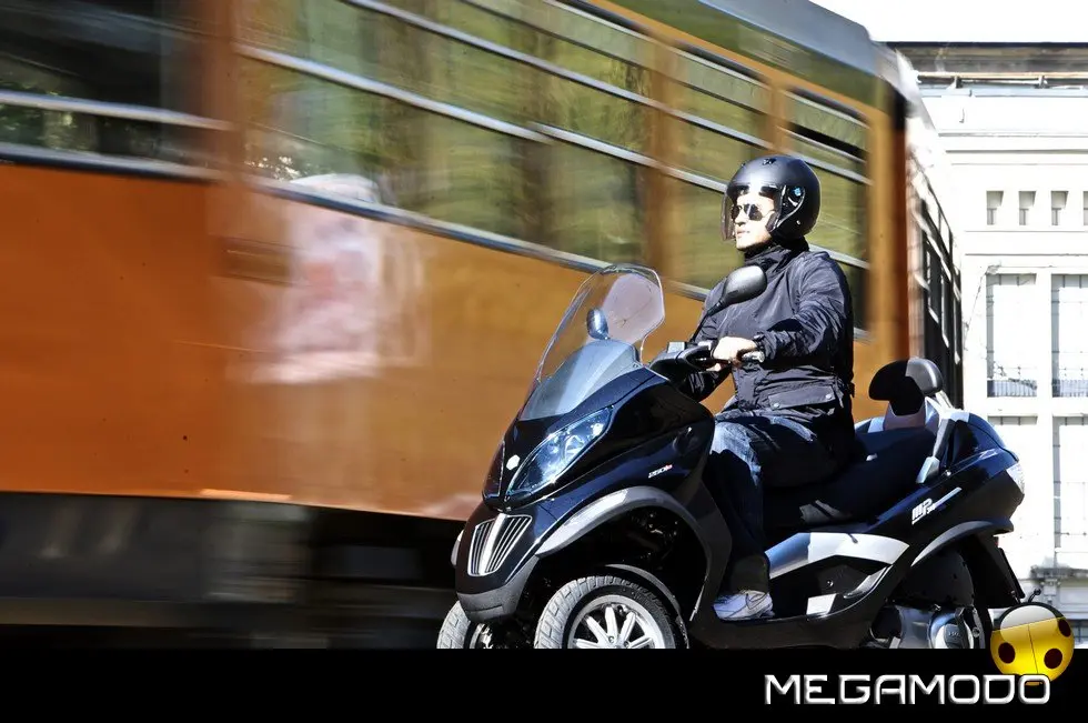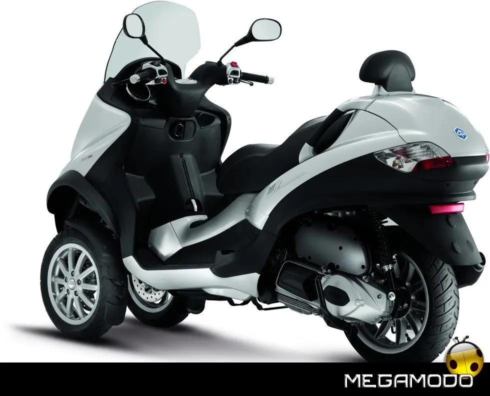 Piaggio MP3: un progetto unico al mondo. La guida di Piaggio MP3 è un’esperienza assolutamente rivoluzionaria, grazie al sistema di sospensione e alla doppia ruota anteriore che consente una stabilità in curva superiore a qualsiasi scooter. In velocità, anche nella scia di altri mezzi, Piaggio MP3 rimane incollato al terreno e raggiunge le massime prestazioni nella totale sicurezza. E la rivoluzione delle tre ruote si avverte in tutta la sua importanza sull’asfalto bagnato o in condizioni critiche per i mezzi tradizionali. Nei percorsi cittadini e metropolitani Piaggio MP3 non ha paragoni in fatto di sicurezza: pavé, asfalto irregolare o sconnesso, rotaie, tombini sono superati con una facilità e una stabilità mai provate prima.