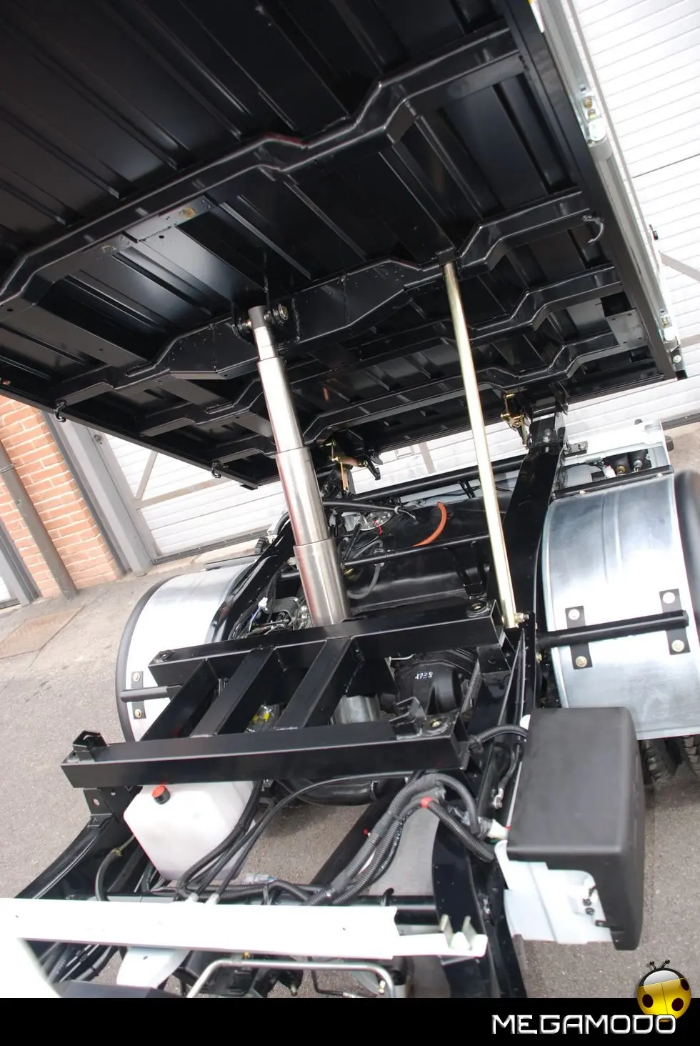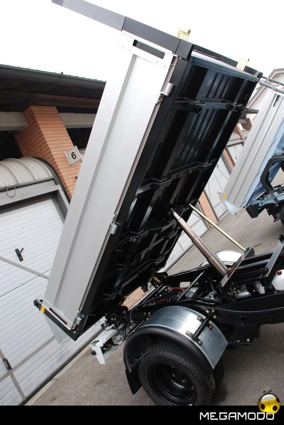 · Il pianale ribaltabile è stato realizzato per offrire la soluzione del carico/scarico rapido anche su un veicolo compatto, coniugandone quindi gli innegabili benefici, unici sul mercato, in termini di manovrabilità e facilità di guida. Indispensabile per le aziende edili che operano nei centri storici. · Sponde da 40 cm in lega, o da 30 cm in ferro. Apertura manuale o automatica della sponda posteriore in fase di scarico per ottimizzare i tempi di lavoro. Pianale “all flat” per ottimizzare la superficie di carico. · Sistema idraulico con “braccio a compasso” che consente un ampio angolo di ribaltamento del pianale.
