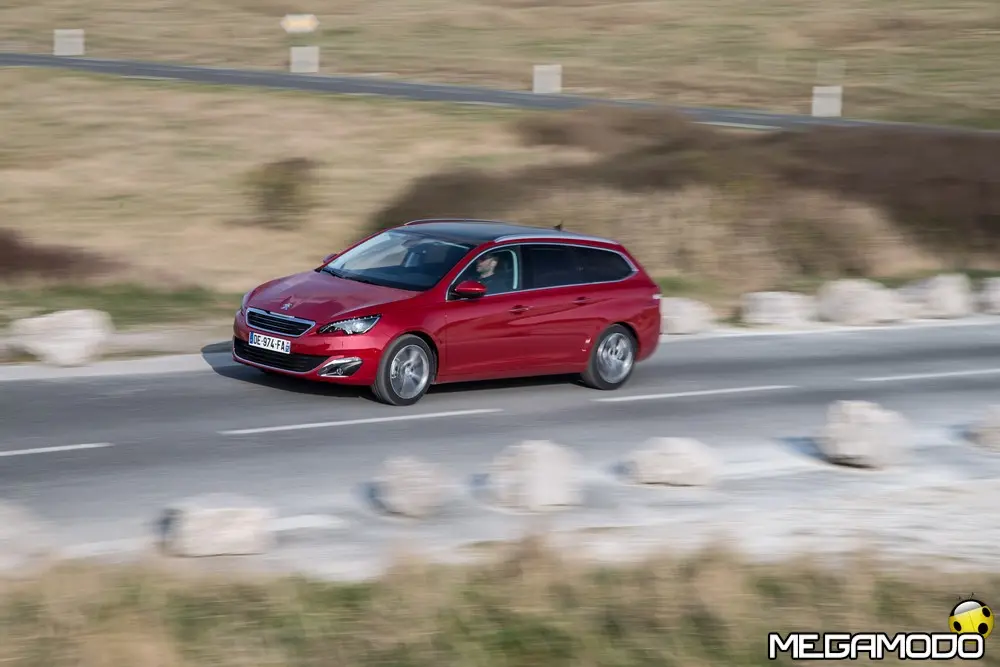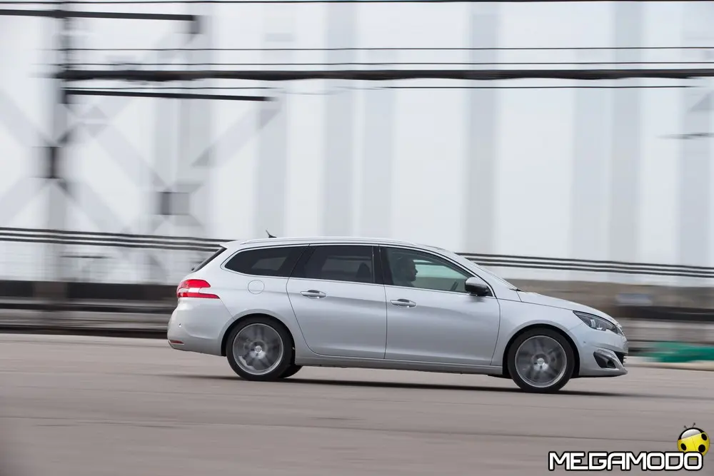 Posizionato sulla plancia e perfettamente integrato, il quadro strumenti è stato disegnato come un oggetto tecnologico di grande precisione. I quadranti sono allungati e larghi e la rotazione simmetrica delle lancette facilita la lettura delle informazioni disposte ai lati del volante ridotto. Questa disposizione permette di concentrare l'attenzione del conducente nella parte alta della strumentazione, per non distogliere lo sguardo dalla strada. Le lancette rosse rimandano agli orologi di precisione. Negli allestimenti alto di gamma sono rivestite in cromo, come le cornici del tachimetro e del contagiri. In questo caso, i quadranti hanno una graduazione specifica e una funzione black panel che nasconde le spie e le cifre a vettura ferma. Nell'abitacolo si respira il profumo della qualità. I materiali, i tessuti e il rigore dell'assemblaggio e della costruzione sono pensati per posizionare la 308 SW in un universo premium. Ad esempio, la plancia è interamente imbottita, il volante è rivestito in pelle pieno fiore a partire dal secondo livello di allestimento, inserti neri laccati e in cromo satinato sono presenti nell'abitacolo in corrispondenza delle zone di utilizzo. Aumenta lo spazio a bordo. Come la berlina, la nuova Peugeot 308 SW utilizza la nuova piattaforma EMP2 del gruppo PSA. Questa <<Efficient Modular Platform>> lascia ampia libertà di regolazioni, soprattutto in lunghezza. Infatti il passo è stato allungato rispetto a quello della berlina di 11 cm, interamente dedicati all'abitabilità posteriore, soprattutto allo spazio per le ginocchia (+ 3 cm) e al volume del bagagliaio. L’accessibilità posteriore è ottimizzata grazie all'apertura delle porte più larghe e all'arretramento del divano posteriore di 29 mm. Il lancio della nuova Peugeot 308 SW coincide con la presentazione di due nuove famiglie di motori, tutti Euro 6 e caratterizzati dalla massima efficienza: i 1.2 da 3 cilindri Pure Tech e i diesel BlueHDi. Per quanto riguarda i benzina al momento solo una la versione disponibile, il 1.2 THP da 130 Cv; da luglio è in arrivo una versione da versione 110 CV. Due invece le motorizzazioni diesel disponibili da subito, un 1.6 da 92 e 155 CV e un 2.0 da 150 Cb disponibile anche con cambio automatico. Prezzi Si parte dai 19.300 euro per la versione benzina in arrivo, fino a superare i 28.500 per la top di gamma, Allure con cambio automatico.