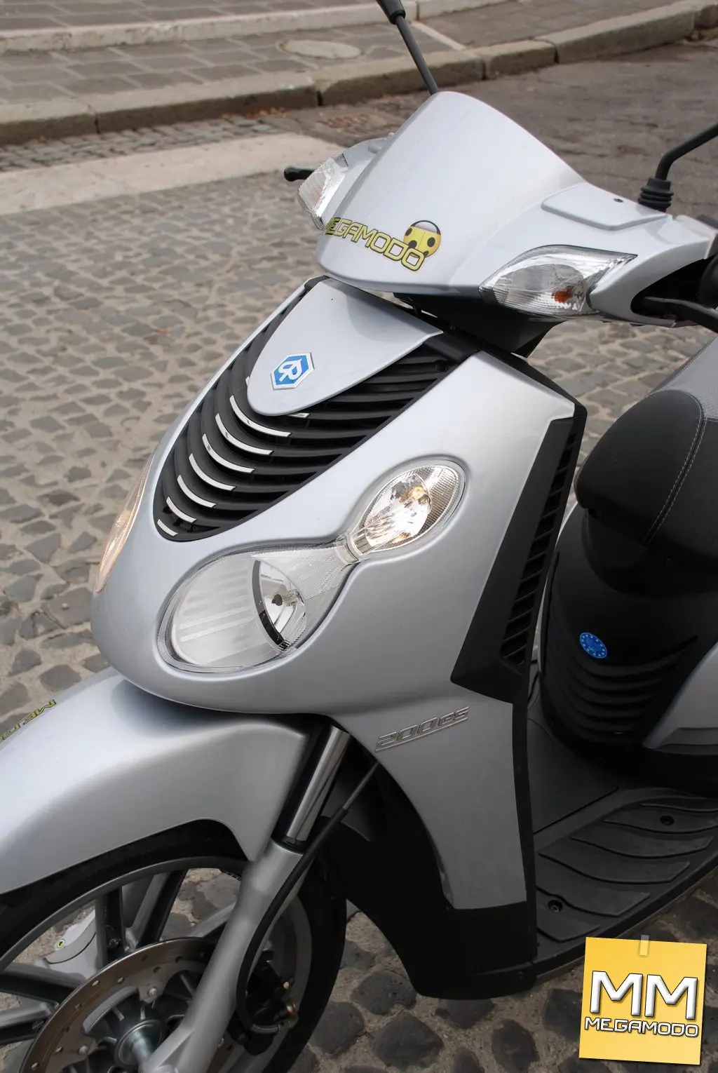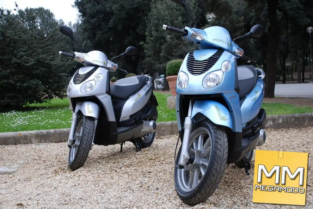 SCHEDA TECNICA 125: Motore: monocilindrico, 4 tempi, 4 valvole Piaggio LEADER con sistema aria secondaria SAS e marmitta a doppio stadio di catalisi Cilindrata: 124 cc Alesaggio: 57 mm Corsa: 48,6 mm Carburante: benzina senza piombo NOR min 95 Rapporto di compressione: 12±0.5 : 1 Potenza max all’albero: 15 CV (11 Kw) a 9.750 giri Coppia max: 12 Nm a 8.000 giri Raffreddamento: a liquido con circolazione forzata Cambio: variatore automatico CVT con asservitore di coppia Accensione: elettronica a scarica capacitiva (CDI) e mappa di anticipo variabile Avviamento: elettrico (tipo Bendix) con decompressore automatico e starter automatico Telaio: monoculla in doppio tubo di acciaio altoresistenziale Sospensione anteriore: forcella telescopica idraulica, steli da 35mm - Corsa: 104 mm Sospensione posteriore: motore con funzione di forcellone oscillante, doppio ammortizzatore idraulico a doppio effetto e precarico molla regolabile su 4 posizioni – Corsa: 90 mm Freno anteriore: disco in acciaio inox Ø 260 mm e pinza flottante con due pistoni Ø 25.4 mm Freno posteriore: disco in acciaio inox Ø 260 mm e pinza flottante con due pistoni Ø 25.4 mm Cerchio ruota anteriore: lega allumino pressofusa 16″ x 3,00 Cerchio ruota posteriore: lega alluminio pressofusa 16″ x 3,50 Pneumatico anteriore: tubeless 110/70-16” Pneumatico posteriore: tubeless 130/70-16” Lunghezza/Larghezza: 2.000 mm / 740 mm Passo: 1.365 mm Altezza sella: 785 mm Peso a secco: 146 kg Capacità serbatoio: 9 litri Velocità max: 104 km/h Consumo: ciclo ECE 40 24 km/l Omologazione: Euro3 SCHEDA TECNICA 200: Motore: monocilindrico, 4 tempi, 4 valvole Piaggio LEADER con sistema aria secondaria SAS e marmitta a doppio stadio di catalisi Cilindrata: 198 cc Alesaggio: 72 mm Corsa: 48,6 mm Carburante: benzina senza piombo NOR min 95 Rapporto di compressione: 11,5 :1 Potenza max all’albero: 21 CV (15,4 Kw) a 9.000 giri Coppia max: 21 Nm a 6.250 giri Raffreddamento: a liquido con circolazione forzata Cambio: variatore automatico CVT con asservitore di coppia Accensione: elettronica a scarica capacitiva (CDI) e mappa di anticipo variabile Avviamento: elettrico (tipo Bendix) con decompressore automatico e starter automatico Telaio: monoculla in doppio tubo di acciaio altoresistenziale Sospensione anteriore: forcella telescopica idraulica, steli da 35mm - Corsa: 104 mm Sospensione posteriore: motore con funzione di forcellone oscillante, doppio ammortizzatore idraulico a doppio effetto e precarico molla regolabile su 4 posizioni – Corsa: 90 mm Freno anteriore: disco in acciaio inox Ø 260 mm e pinza flottante con due pistoni Ø 25.4 mm Freno posteriore: disco in acciaio inox Ø 260 mm e pinza flottante con due pistoni Ø 25.4 mm Cerchio ruota anteriore: lega allumino pressofusa 16″ x 3,00 Cerchio ruota posteriore: lega alluminio pressofusa 16″ x 3,50 Pneumatico anteriore: tubeless 110/70-16” Pneumatico posteriore: tubeless 130/70-16” Lunghezza/Larghezza: 2.000 mm / 740 mm Passo: 1.365 mm Altezza sella: 785 mm Peso a secco: 146 kg Capacità serbatoio: 9 litri Velocità max: 119 km/h Consumo: ciclo ECE 40 25 km/l Omologazione: Euro3
