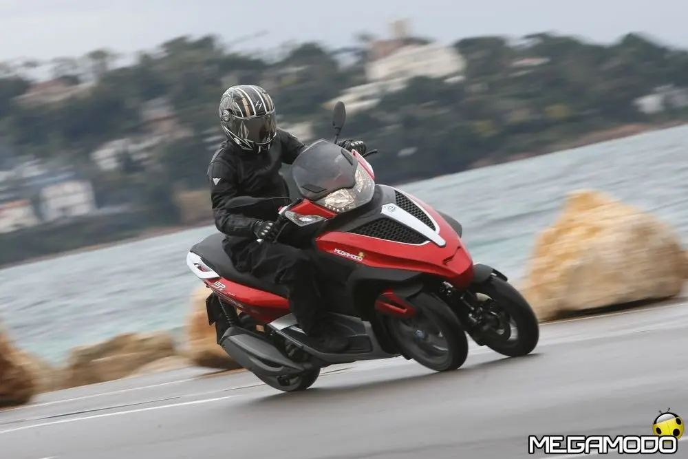 Nella guida l’avantreno risulta più preciso, il miglioramento è tangibile fin dai primi metri: quasi ci si dimentica di avere due ruote anteriori e viene naturale guidarlo come un normale scooter. Il sistema di sospensione anteriore a quadrilatero articolato e la doppia ruota anteriore sono elementi unici e distintivi che rendono la guida di Piaggio Mp3 un’esperienza assolutamente rivoluzionaria, che consente di sperimentare una stabilità in curva superiore a qualsiasi scooter, beneficiando di una tenuta di strada eccellente che si avverte in tutta la sua importanza sull’asfalto bagnato o in condizioni di scarsa aderenza.