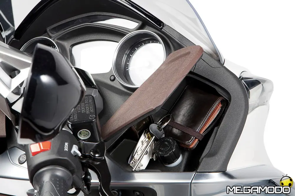 Novità assoluta sono i comandi sul manubrio retroilluminati, molto utili in condizioni di bassa luce a tutto vantaggio della sicurezza. La sella offre il massimo comfort, assicurato anche dalla posizione di guida e la regolazione longitudinale del cuscino lombare che consente di variare lo spazio a disposizione del passeggero e la differenza di altezza tra la seduta del pilota e quella del passeggero, ma è soprattutto la riduzione a 109 mm tra le due posizioni a portare un vantaggio della protezione dall’aria per quest’ultimo. Le due appendici aerodinamiche trasparenti laterali e l’ampio parabrezza proteggono efficacemente pilota e passeggero dall’impatto diretto dell’aria.