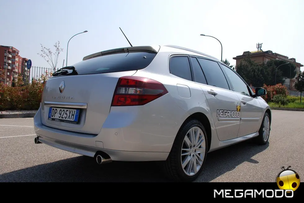 Sviluppato congiuntamente dalle équipe di Renault e Renault Sport Technologies, il telaio Active Drive funziona grazie ad un sistema di gestione elettronica della dinamica dell’auto. Attraverso la rete CAN, il sensore ubicato sul piantone dello sterzo invia l’informazione sull’angolazione del volante alla centralina 4RD, situata nella parte posteriore del retrotreno, che recupera anche i dati relativi alla velocità dell’auto, provenienti dal gruppo ESP/ABS. Confrontando i valori di angolazione del volante nel tempo, la centralina è in grado di individuare i movimenti veloci del volante, sinonimo di guida sportiva o di manovre di evitamento ostacoli. In funzione di tali parametri, la centralina impartirà la consegna adeguata di sterzata delle ruote posteriori al martinetto dell’attuatore elettrico, montato sull’assale posteriore. La precisa modellizzazione del comportamento dinamico dell’auto consente un costante controllo della traiettoria ideale, sulla base delle informazioni provenienti dalle iniziative del conducente e dalla situazione reale dell’auto. Centralina ed attuatore elettrico sono forniti da Aisin, componentista giapponese apprezzato per la sua esperienza nel campo delle 4 ruote sterzanti. Due le motorizzazioni: la prima 2.0 dCi è proposta con un eccezionale livello di potenza di 180 cv (131 kW) a 3750 g/min. Con una coppia massima di 400 Nm, disponibile fin da 2000 g/min, l’aumento di regime è rapido e costante fino a 5000 g/min. Questa configurazione consente al propulsore, equipaggiato con turbo a geometria variabile a inerzia ridotta, che privilegia la dinamica ai bassi regimi, di esprimere il meglio di sé: la vettura percorre il chilometro con partenza da fermo in appena 29,6 secondi (accelerazione da 0 a 100 km/h in 8,5 secondi). Equipaggiata con filtro antiparticolato e valvola EGR a raffreddamento potenziato, questa nuova versione dedicata al piacere intenso rispetta l’ambiente con un consumo in ciclo misto di 6,5 litri/100 km (172 g di CO2 emessi per chilometro percorso). Con le candele di preriscaldamento ultrarapide, il propulsore 2.0 dCi 180 cv FAP entra in azione immediatamente tramite il pulsante “Start”, anche in situazione di freddo intenso (-23°C). L'altra benzina invece, monta la declinazione sportiva del 2 litri turbo 16 valvole: 205 cv (150 kW) a 5000 g/min e 300 Nm disponibili fin da 3000 g/min. Frutto della tecnologia di Mégane Renault Sport, questa motorizzazione è stata specificamente ottimizzata per New Laguna GT al fine di garantire, al tempo stesso, performance, grinta ed intenso piacere di guida, una versatilità caratterizzata da un comportamento particolarmente elastico e fluido, ma anche da una stupefacente reattività e rigidità per un utilizzo sportivo. La vivacità della salita nei regimi è stata ottenuta intervenendo sull’aspirazione dell’aria e utilizzando un turbo a doppia entrata (Twin scroll Turbo) che riduce i tempi di risposta. New Laguna GT 2.0T accelera da 0 a 100 km/h in 7,8 secondi e percorre i 1000 metri con partenza da fermo in 28 secondi, con un consumo contenuto di 8,2 litri/100 km (194 g di CO2 emessi per chilometro percorso). Con una linea espressiva e raffinata, New Laguna GT è più di una semplice versione sportiva. All’estremità del lungo cofano motore spiovente, il frontale aggressivo svela una griglia che contraddistingue i modelli più dinamici della marca. Le prese d’aria laterali ne sottolineano la natura sportiva, esaltata dallo sguardo distintivo dei proiettori, inquadrati da una mascherina nera. Derivata dagli sviluppi della competizione in Formula 1, New Laguna GT calza specifici pneumatici sovradimensionati Bridgestone Potenza 225/45 da 18 pollici. I cerchi traforati Celsium, che le sono dedicati, permettono di intravedere i dischi dei freni di 320 mm di diametro all’anteriore e di 300 mm al posteriore che garantiscono una maggiore efficacia. Le carenature, sottolineano le eccezionali qualità del telaio Active Drive fino al caratteristico doppio terminale di scarico cromato. I retrovisori in tinta nero brillante e i gruppi ottici posteriori fumé ricordano che, anche in tema di design, New Laguna GT ha tutte le qualità di una grande stradista sportiva.