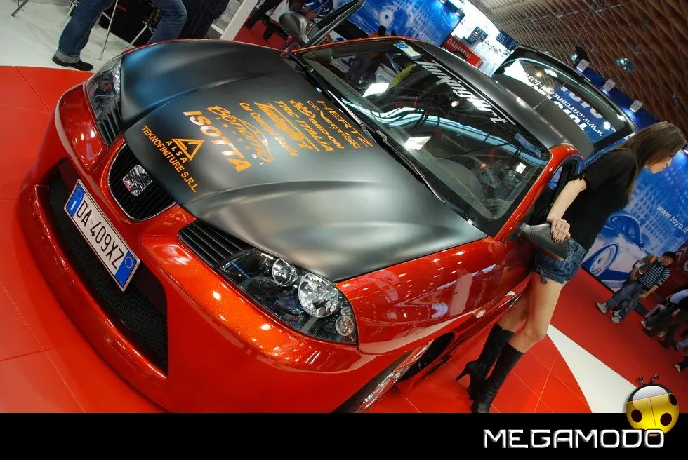 Il vivace stand della SEAT presso la Fiera di Rimini vedrà protagoniste le ultime novità in fatto di allestimenti speciali, studiati per vetture altrettanto particolari. Si comincia con la Ibiza Special Edition, che per l’occasione si presenta nel mitico Rosso Emocion, capace di esaltare al massimo un kit aerodinamico decisamente completo e così composto: spoiler anteriore, posteriore e al tetto, minigonne laterali, (il tutto in tinta con la carrozzeria) e gusci degli specchietti retrovisori cromati. La stessa finitura lucida sottolinea anche il profilo del portellone. Le luci posteriori sono in colore argento e il terminale di scarico è posizionato centralmente. Per quanto riguarda gli interni, risaltano in particolare i battitacco in acciaio SEAT Sport per tutte le 4 porte, la pedaliera Sport, il pomello della leva del cambio e la mascherina di rivestimento del quadro strumenti in color alluminio.