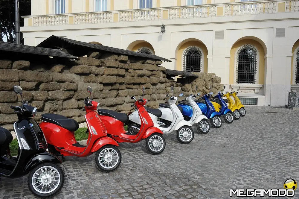 Il risultato è una grafica nuova, sportiva, un manubrio che torna ad avere una divisione orizzontale come le Vespe vintage, e poi abbiamo voluto lavorare sui bracciali dove sono inseriti i comandi elettrici, questi ricordano il vecchio cambio comando frizione delle vespe degli anni ’60. I dettagli diventano sportivi come la cravattina sullo scudo frantale così come la molla della sospensione anteriore, nuove maniglie passeggero, più adatte alla posizione di quest’ultimo, nuovo vano di carico più ampio che ospita un casco jet con visiera. L’ergonomia è stata aumentata, c’è molto più spazio tra sella e contro-scudo, quindi il pilota ha più spazio per gambe e piedi. Nel posteriore troviamo luci a LED per lo stop e la luce di posizione che disegna una V, gli indicatori di direzione a filo carrozzeria molto piccoli. Per quanto riguarda la gamma colori abbiamo: bianco, nero, rosso, blu e giallo. Inoltre abbiamo la sella monoposto, i cerchi bicolore e la cravatta sullo scudo è stata colorata come la 50 Special. Non potevano mancare il parabrezza alto, il bauletto, la pedana, il supporto smartphone, degli elementi cromati di protezione. Abbiamo sviluppato anche delle borse in cuoio e poi c’è una coperta impermeabile che si può attaccare al retro della Vespa per fare un pic-nic. Vespa ha anche una linea di caschi che riprendono i colori del veicolo. Ma Vespa è anche un mondo lifestyle e comprende, quindi, anche una linea di abbigliamento.”