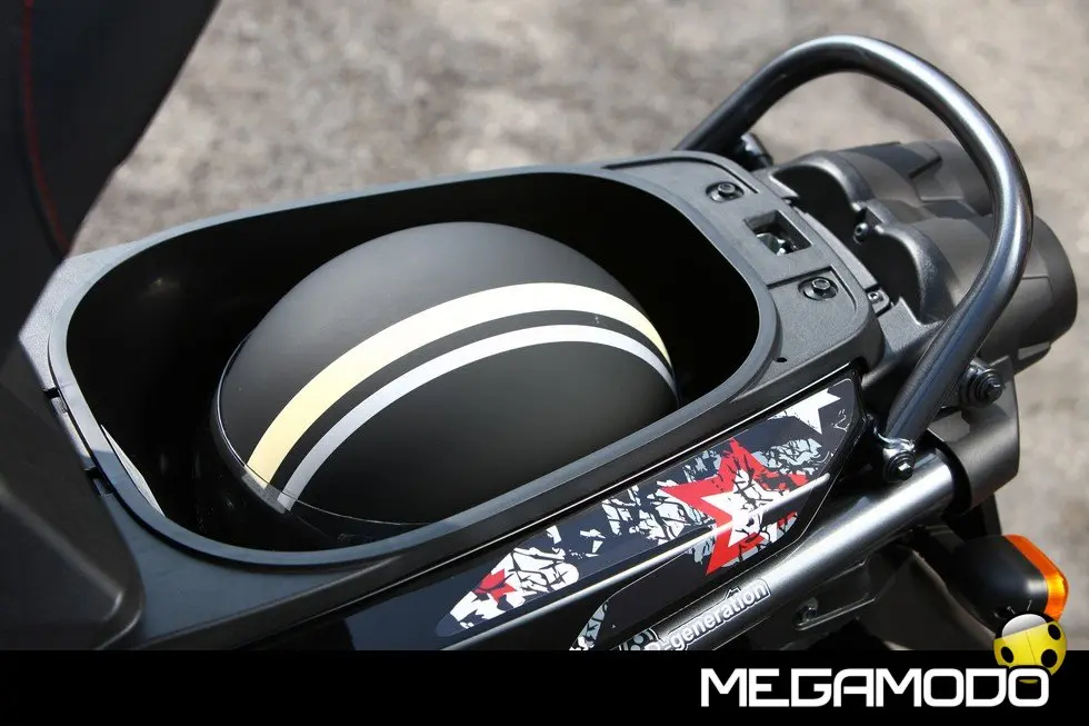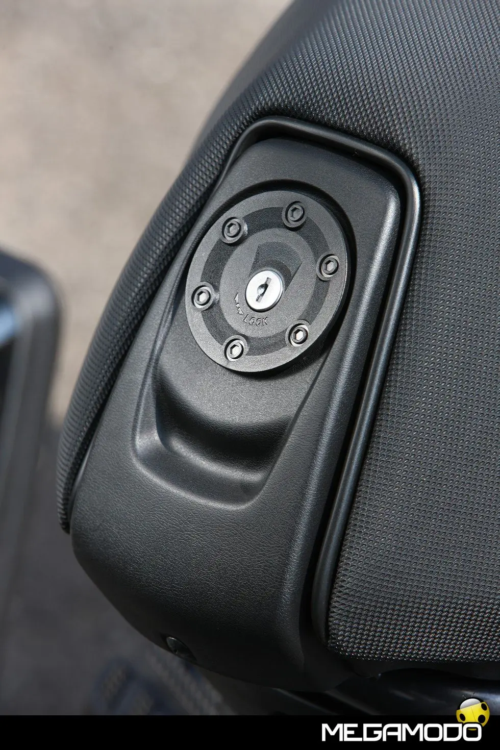 Lo stile si vede anche in dettagli come la strumentazione minimalista, leggibile in ogni condizione, e come il vano sottosella, che può contenere un casco integrale.