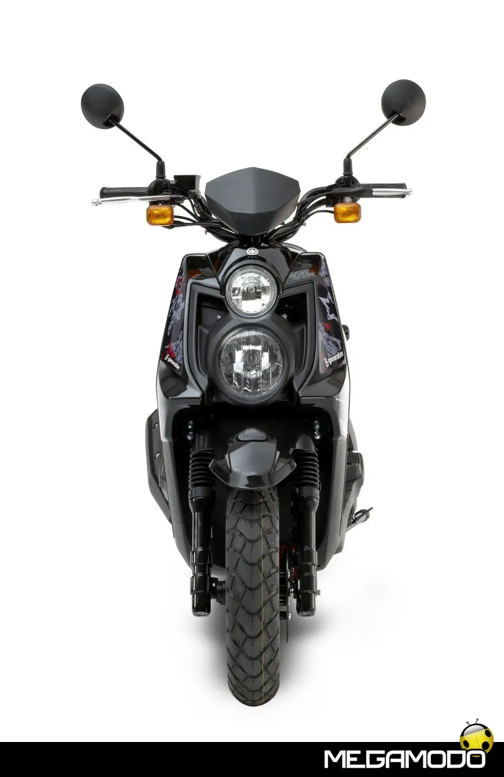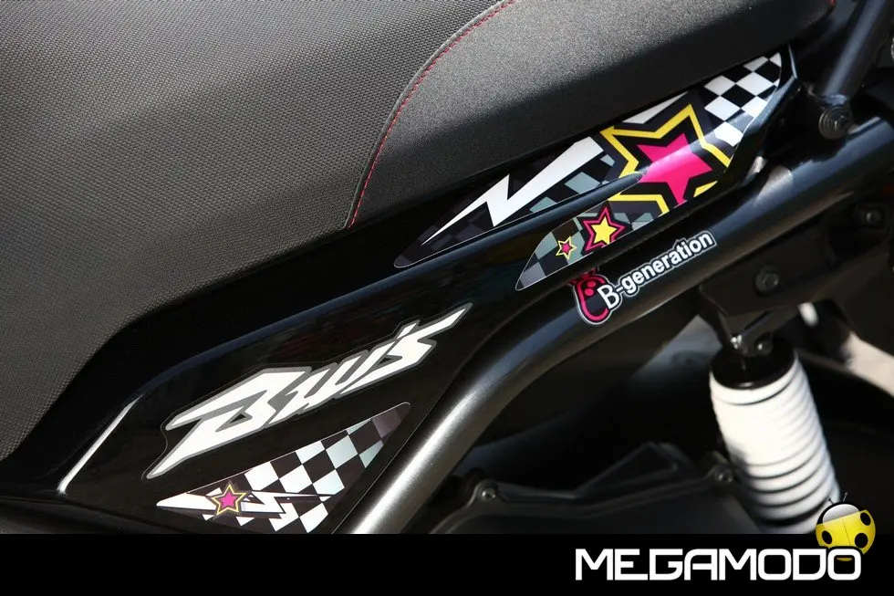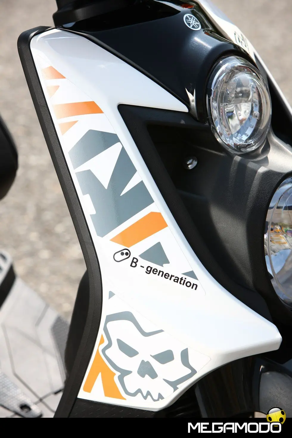 Novità 2010, BW’s 125 B-generation ha tutto il carisma di un modello mitico nella cilindrata 125 cc. Nato per la città, e pensato da Yamaha per i neopatentati A dai 16 anni in su che desiderano un mezzo divertente, sicuro, confortevole anche per la guida con passeggero, ma soprattutto dall’inconfondibile personalità, è in grado di trasformare anche il percorso casa-scuola o, per esempio, scuola-skatepark, in un’esperienza di guida piacevole, appagante e distintiva. Il motore da 125 cc a 4 tempi e raffreddato ad aria è reattivo nel traffico e potente quanto basta per i percorsi a medio raggio, ma sono le nuove grafiche B-generation a rendere il nuovo BW’s 125 B-generation una novità assoluta nel panorama degli scooter dedicati ai teenager. I giovani clienti potranno infatti scegliere tra 10 tipologie differenti di accattivanti grafiche ispirate ai tipici elementi distintivi della street culture metropolitana (5 su base bianca e 5 su base nera). Il configuratore web, on-line su www.yamaha-motor.it/b-generation, e raggiungibile direttamente anche grazie ai QR code (gli originali codice a barre a lettura ottica effettuabile con tutti i telefoni cellulari di ultima generazione) che saranno presenti nelle campagne pubblicitarie di lancio del nuovo BW’s 125 B-generation, consentirà la scelta della grafica prima della fase d’acquisto. 5 i mondi di riferimento identificati tra i più esemplificativi della cultura giovanile contemporanea: Bad Skull, Doll Skull, Pop Star, Rock Star, Bar Code. I giovani Clienti potranno ordinare il BW’s 125 B-generation personalizzato con il tema che preferiscono al prezzo della versione standard. Ma i kit di sticker B-generation saranno in vendita anche separatamente al prezzo di 29 euro, per creare infinite combinazioni o avere uno scooter nuovo ogni volta che lo desidereranno.