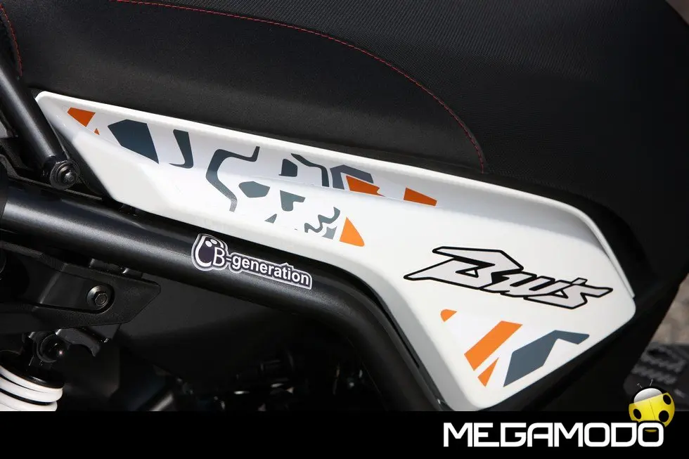 BW’s B-generation 125. Caratteristiche principali: • 5 grafiche originali personalizzabili a piacimento: Bad Skull, Doll Skull, Pop Star, Rock Star, Bar Code • Nuovo, grintoso 125 cc da città • Design esclusivo con telaio a vista • Motore raffreddato ad aria, brillante e pulito, da 125 cc, a 4 tempi • Iniezione elettronica • Telaio leggero per una grande maneggevolezza • Pneumatici da 12 pollici dal grande grip, adatti a tutte le superfici • Doppio ammortizzatore posteriore, progettato per affrontare anche i fondi più sconnessi • Doppio faro anteriore per vedere ed essere visti • Spazio in abbondanza per pilota e passeggero • Vano sottosella per casco integrale • PREZZO: 3.090 € f.c.