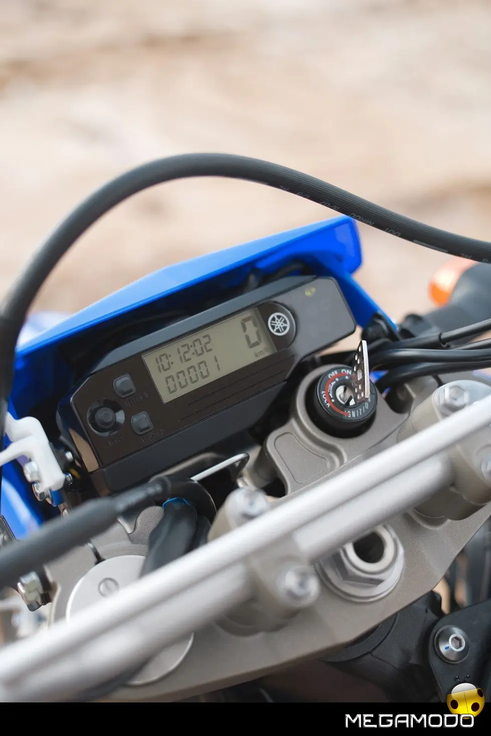 Tachimetro a cristalli liquidi digitale La strumentazione della WR250R è progettata per essere visibile e funzionale, con una struttura leggera e compatta. Il display in modalità “basic” comprende tachimetro, orologio e contachilometri parziale, mentre la modalità di misurazione include un cronometro e un contachilometri .