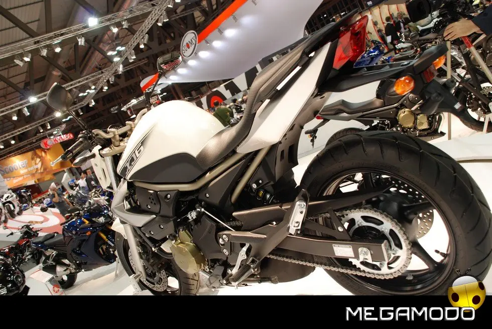 Motore. Caratteristiche principali. • Motore da 600 cc con 4 cilindri in linea, 4 valvole, DOHC • Testa sviluppata ex-novo, con rapporto di compressione elevato • Condotti di aspirazione ridisegnati • Nuovo profilo degli alberi a camme per garantire una coppia corposa e costante nei regimi bassi e medi • Cilindro e carter monoblocco per aumentare la rigidità • Alesaggio x corsa 65,5 mm x 44,5 mm • Pistoni forgiati in alluminio • Sistema di iniezione bidirezionale a 4 ugelli • Scarico 4-2-1 con silenziatore centrale • Catalizzatore a 3 vie con sensore ossigeno • Nuovo sistema di comando frizione più facile da azionare • Meccanismo del cambio ridisegnato per innesti e scalate più fluidi
