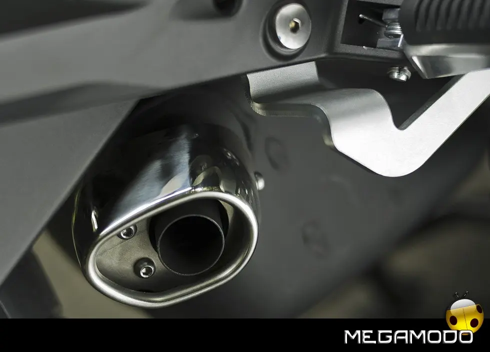 Scarico 4-1 con marmitta centrale Lo scarico 4-1 di nuova concezione è formato da quattro tubi di scarico che convergono in un'unica marmitta collocata in posizione centrale, sotto il telaio. La marmitta emette un sound affascinante, ed è equipaggiata con un catalizzatore a tre vie per un controllo ottimale delle emissioni. Il sistema di scarico è inoltre dotato di un sensore ossigeno che controlla i gas di scarico e trasmette la corrispondente informazione alla centralina, che provvede a regolare all'istante la miscela aria/carburante.